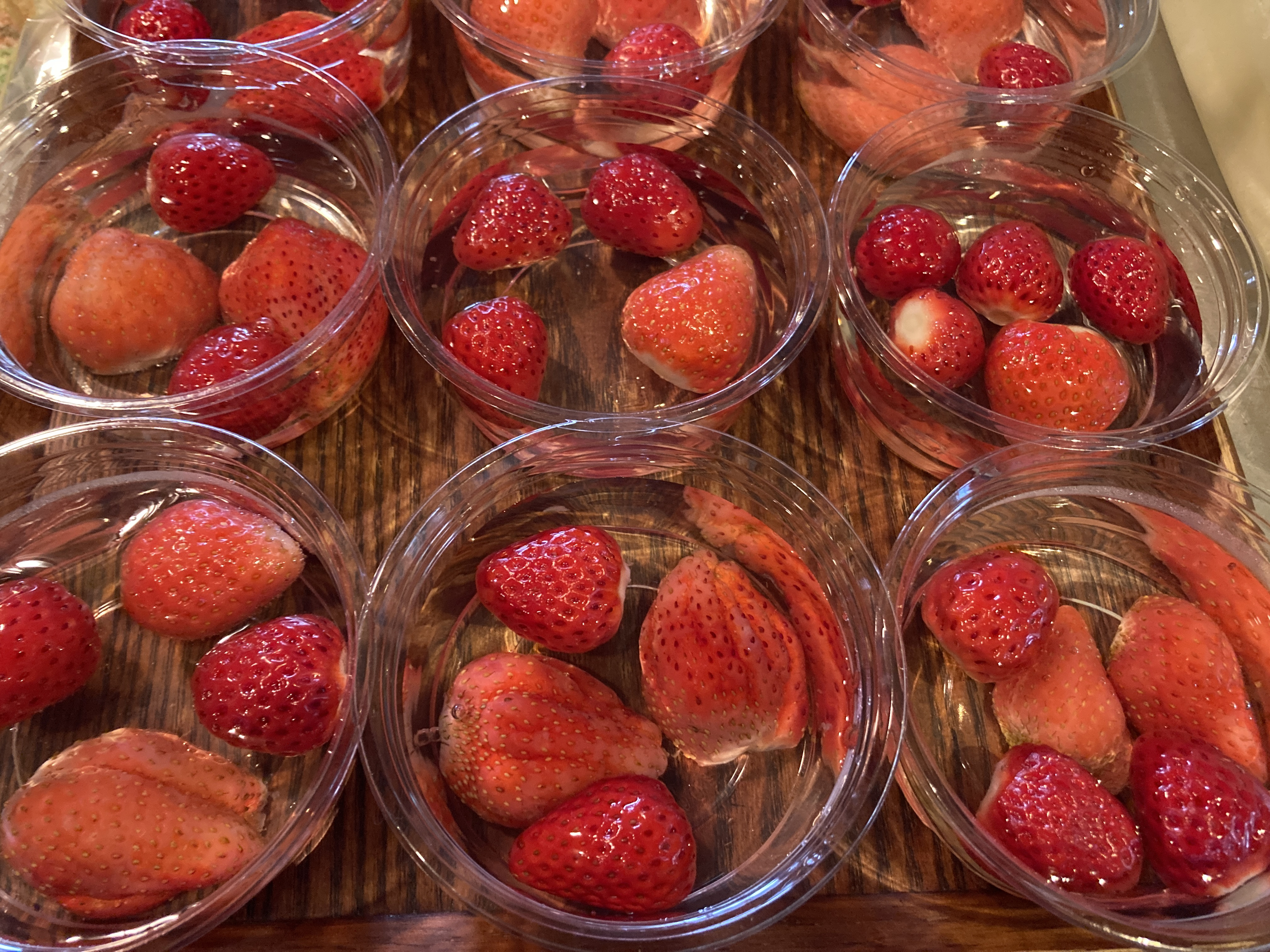 真っ赤な苺がぎっしりのゼリー、たくさんあります。