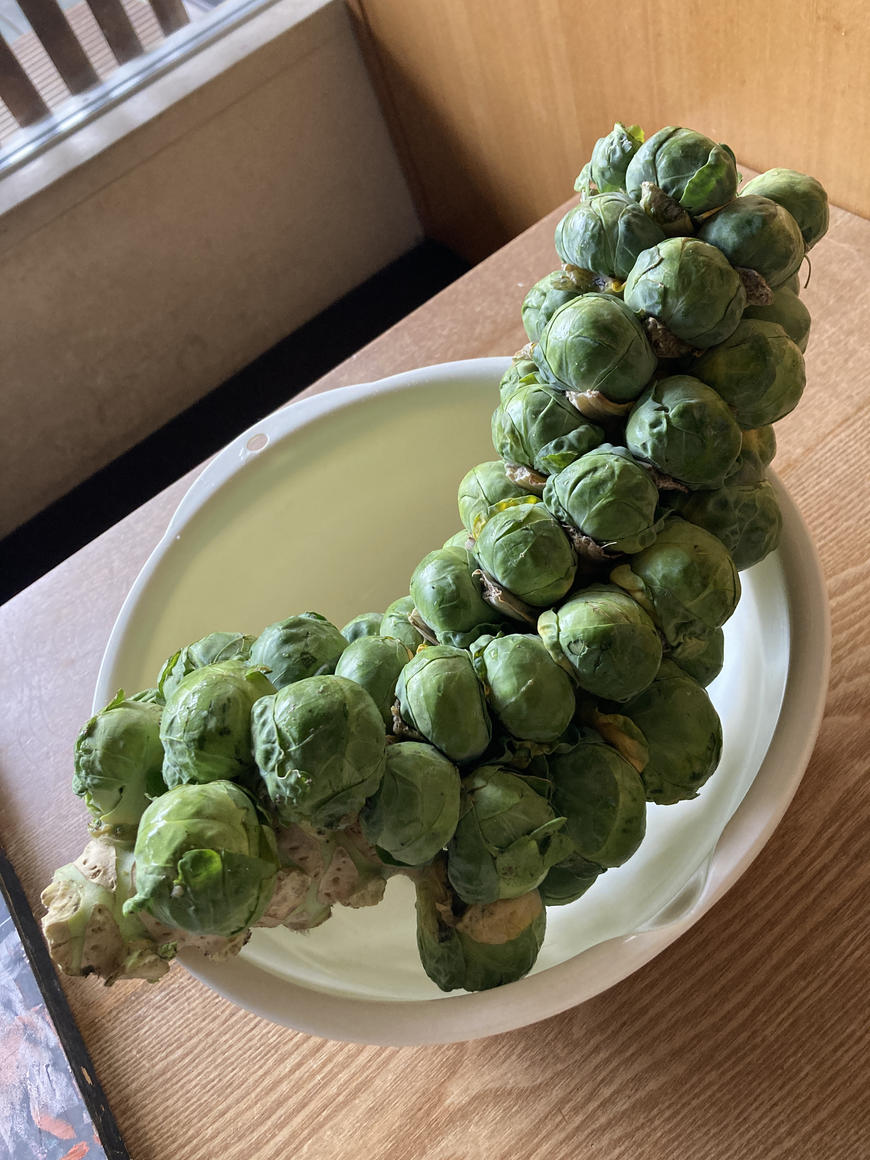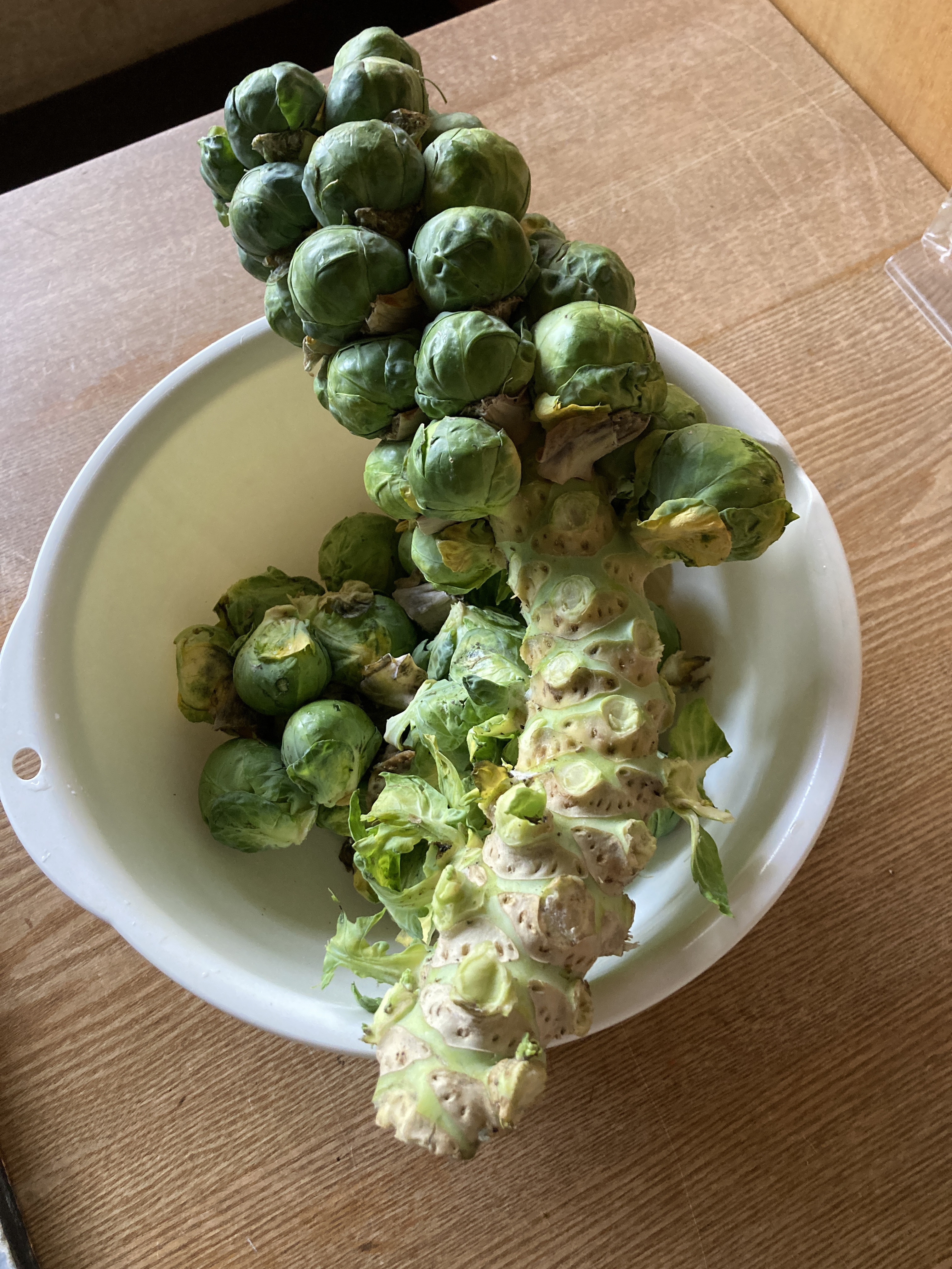 でっかい一本の茎に、53個も芽キャベツがついていました。