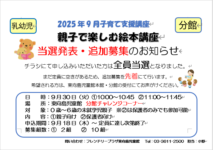 ※2025/10/12(日)は東向島児童館本館・分館とも館内整理日のためお休みです。