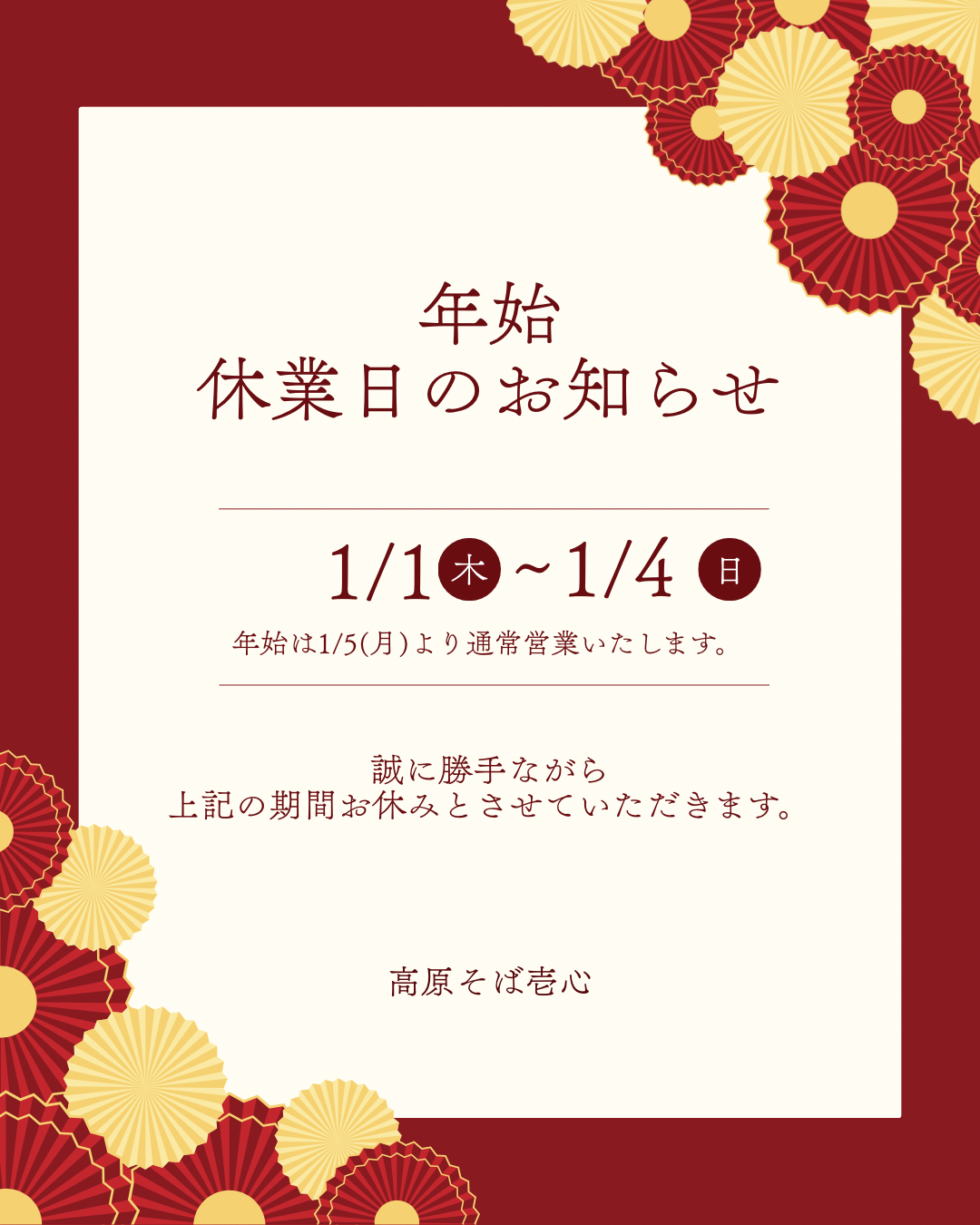 年始の休業のお知らせ