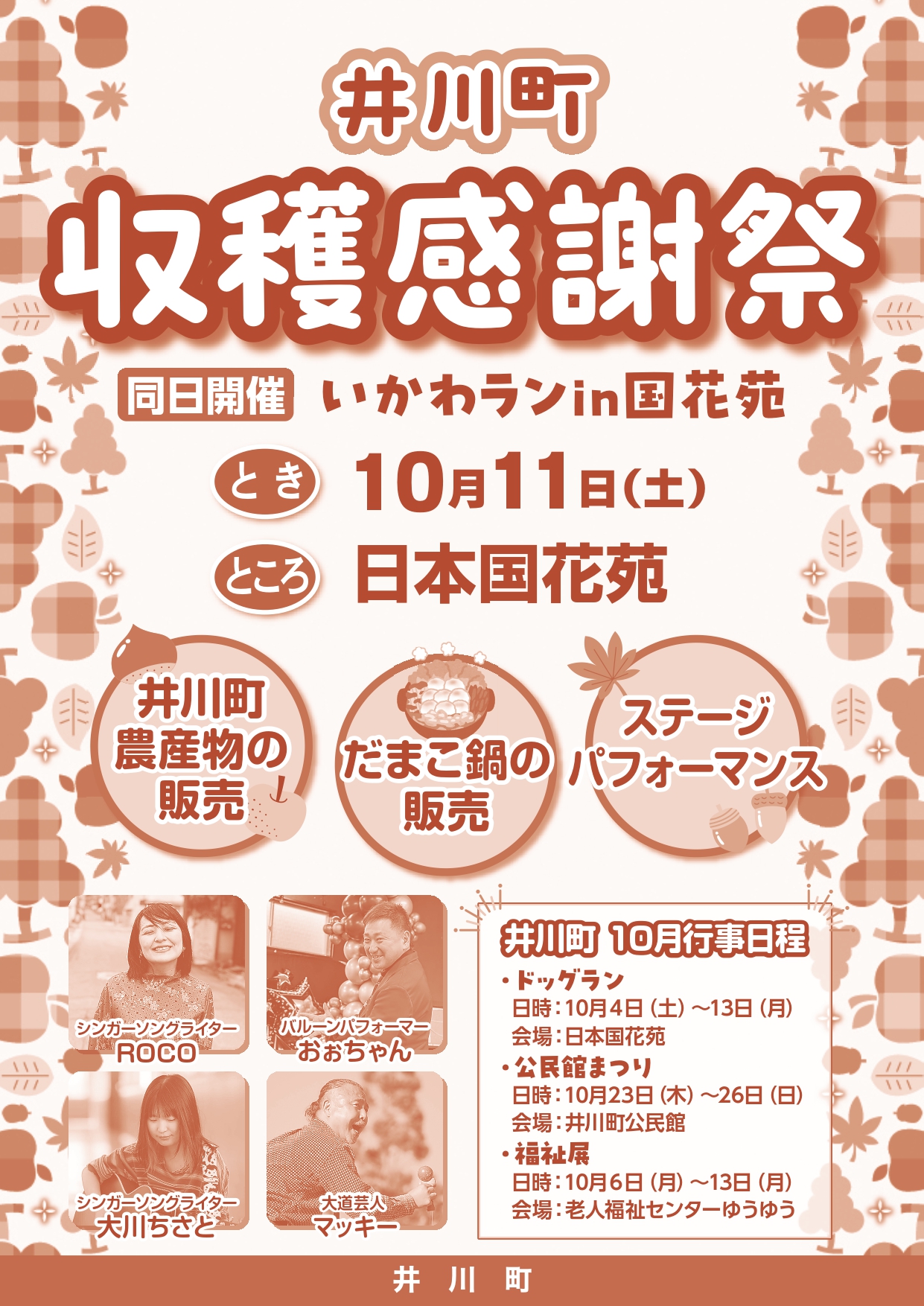 10月11日(土)、井川町「日本国花苑」にて収穫感謝祭が開催されます。