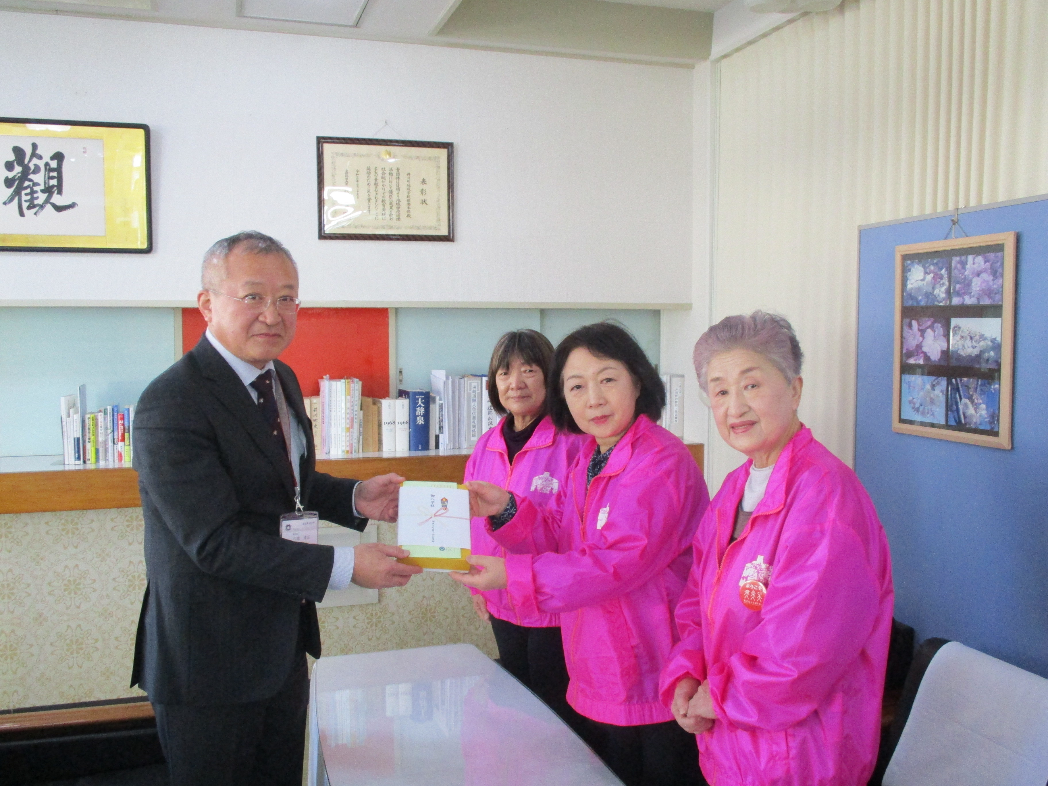 4月5日、3町の教育委員会を訪問し、五城目町へ42個、八郎潟町へ30個、井川町へ 18個(いずれも予備分を含めた数)を寄贈しました。
