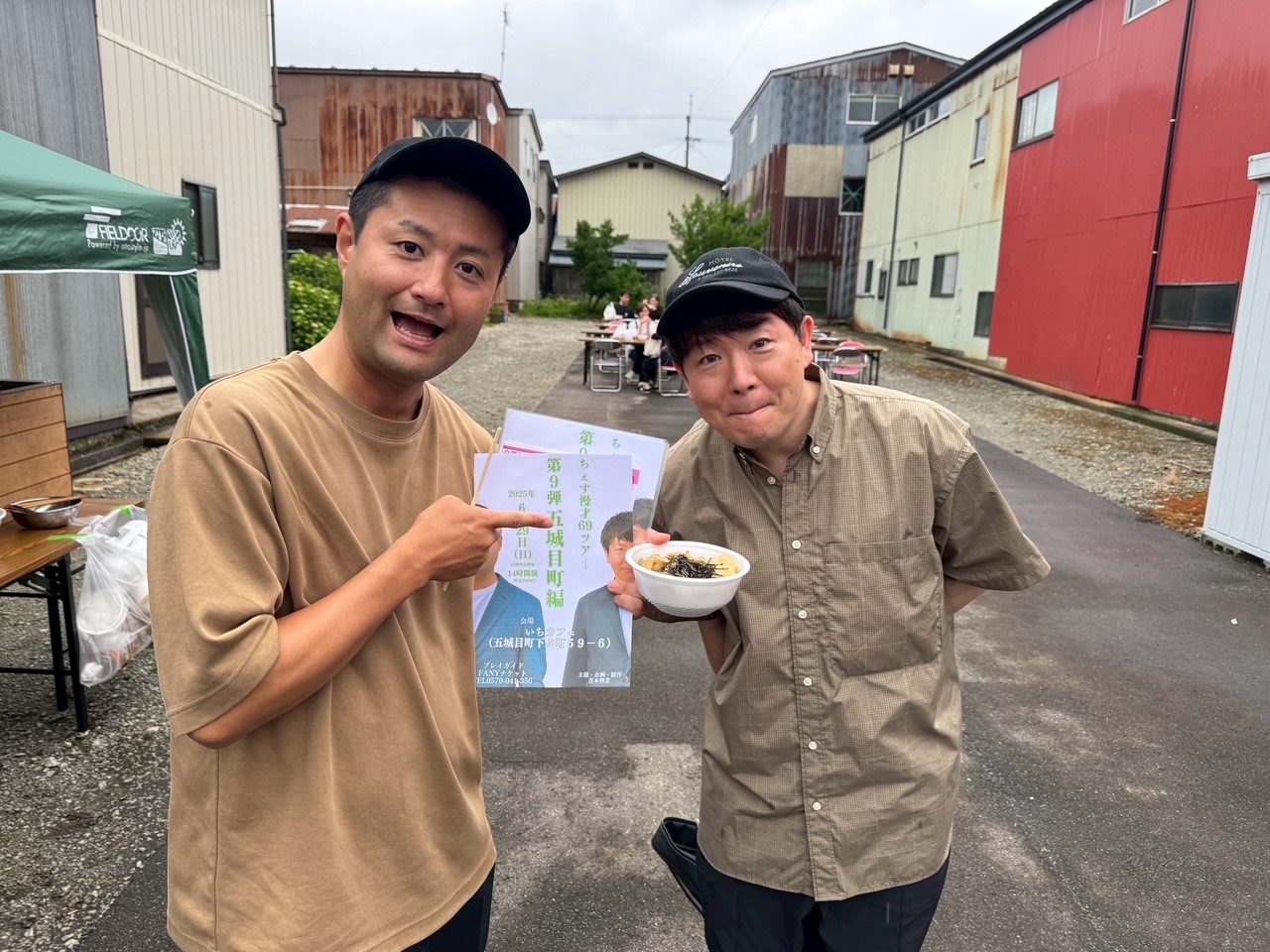 また、秋田県出身の芸人「ちぇす」(吉本興業)が市神祭を訪れ、青年部のだまこそばも食べていただきました!