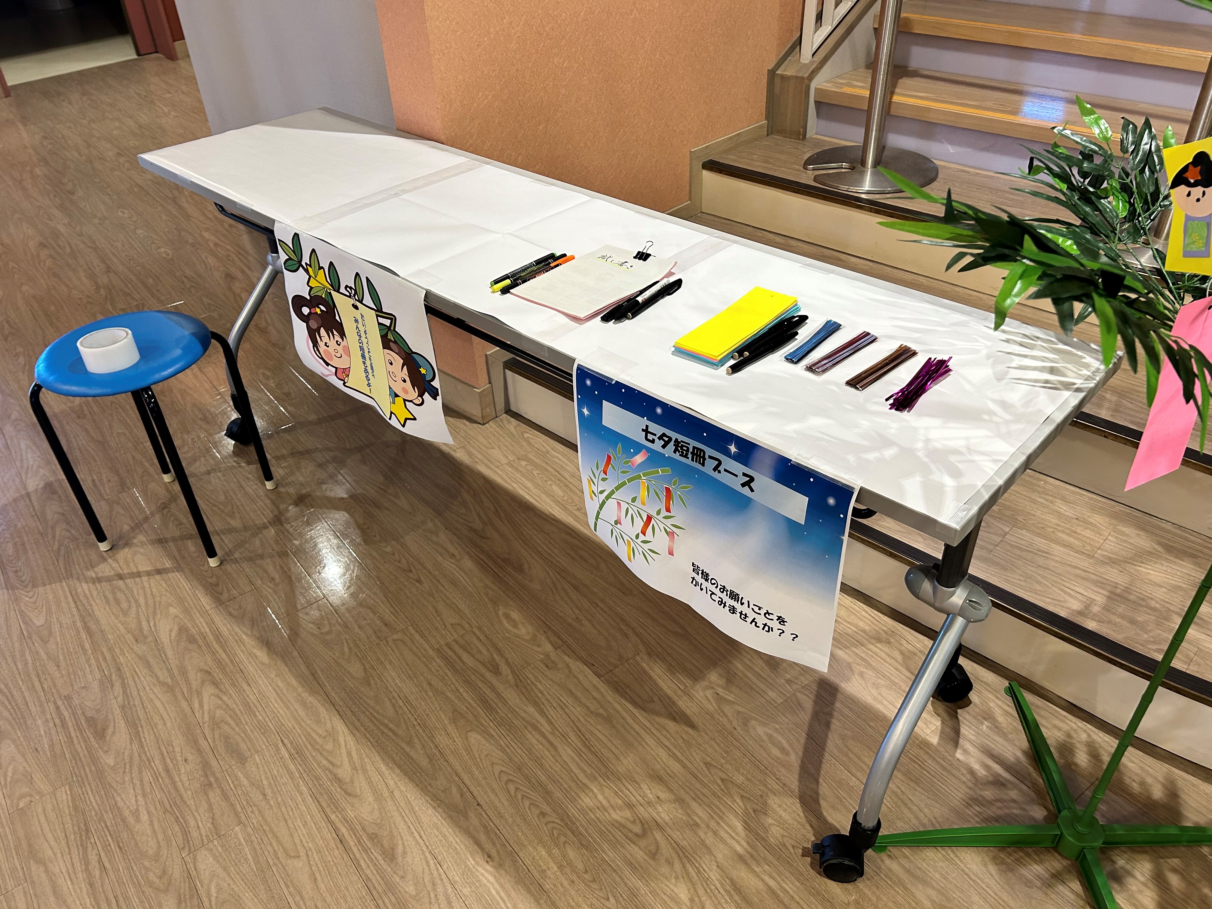 足を運んでいただいた皆様にもご参加いただけるように、短冊の記入ブースを設置しております。