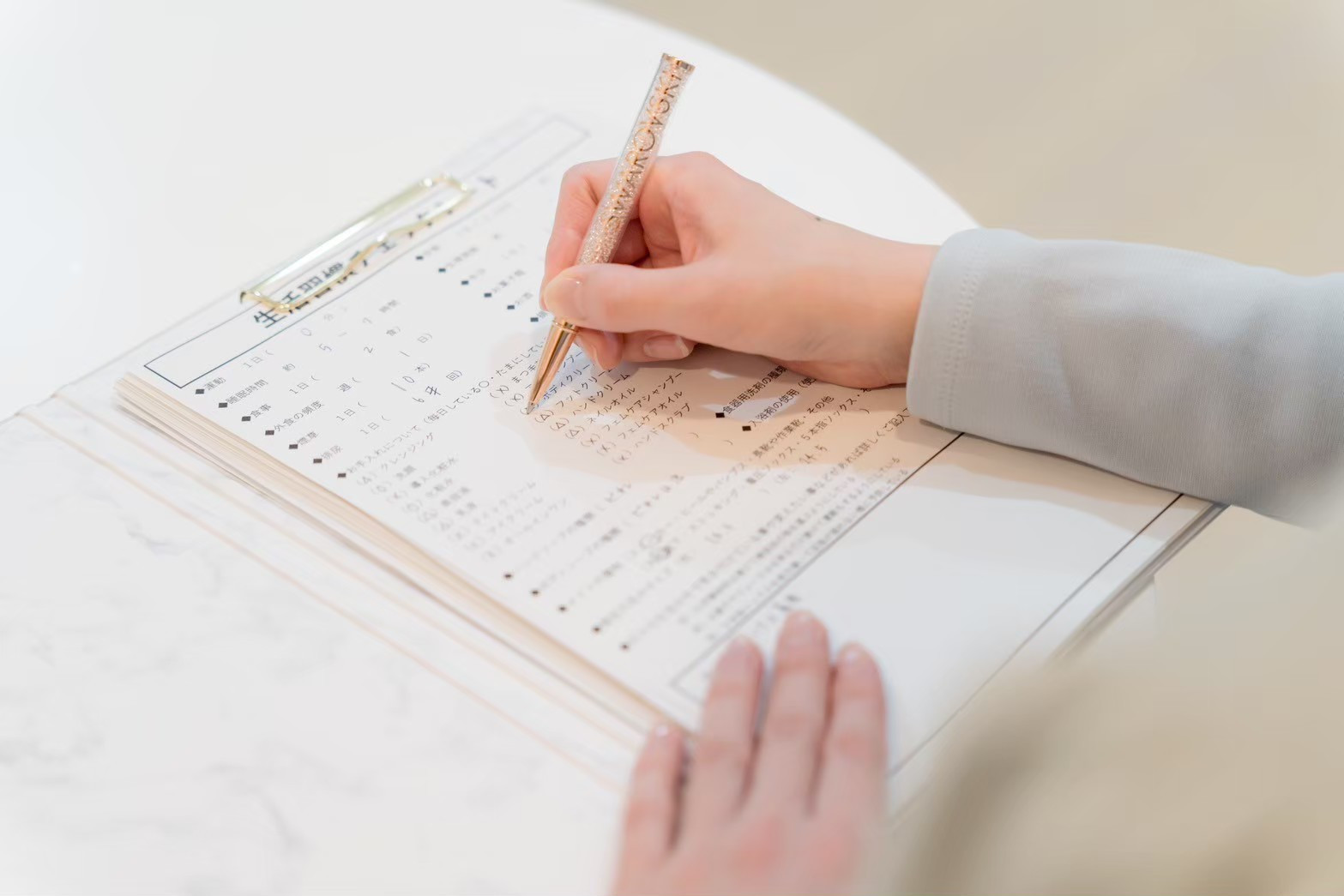 ご来店いただいた後、カウンセリングを行い、爪の状態やお悩みを丁寧にヒアリングし、その後、施術を開始いたします。