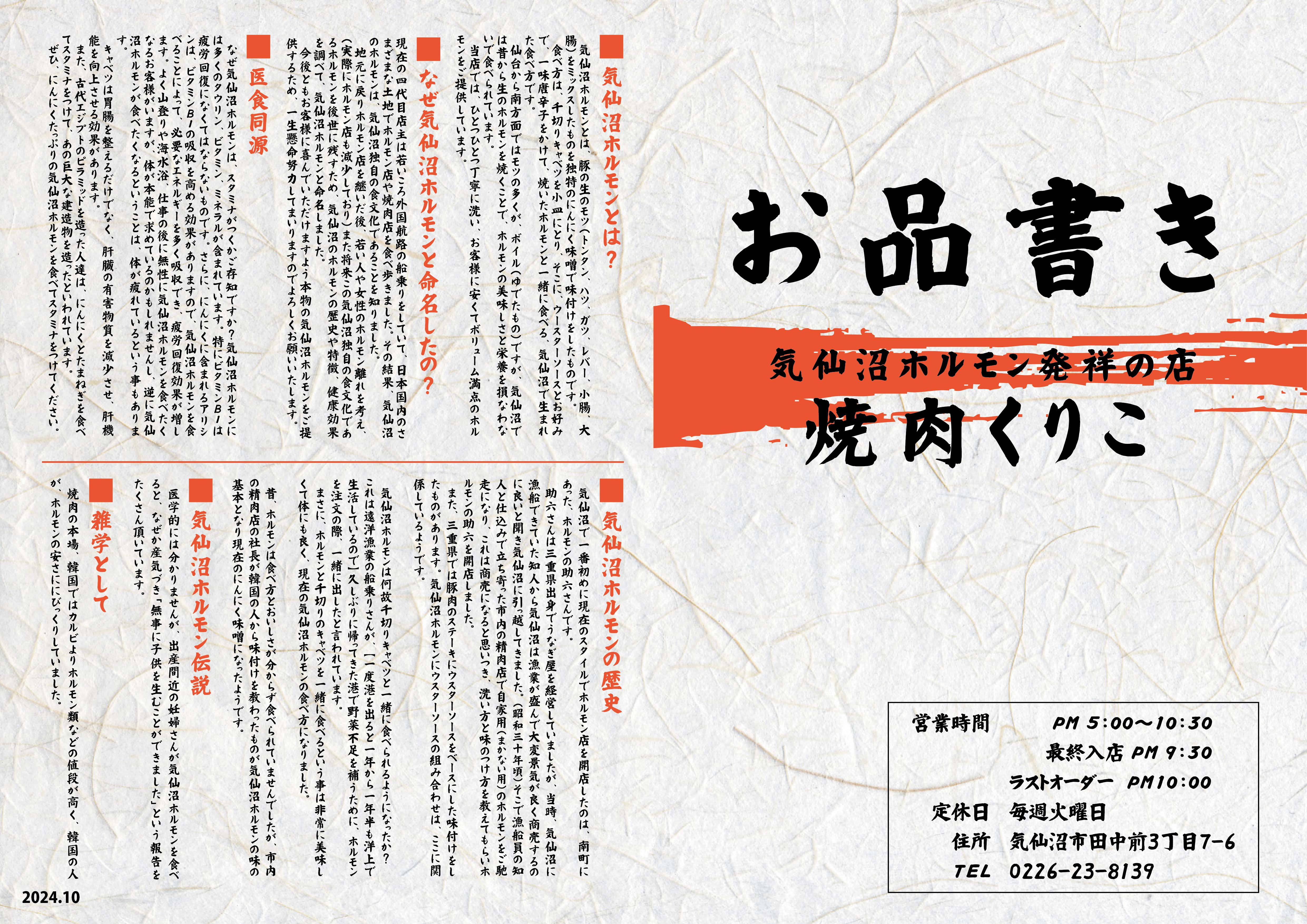 気仙沼ホルモン発祥の店 焼肉くりこ