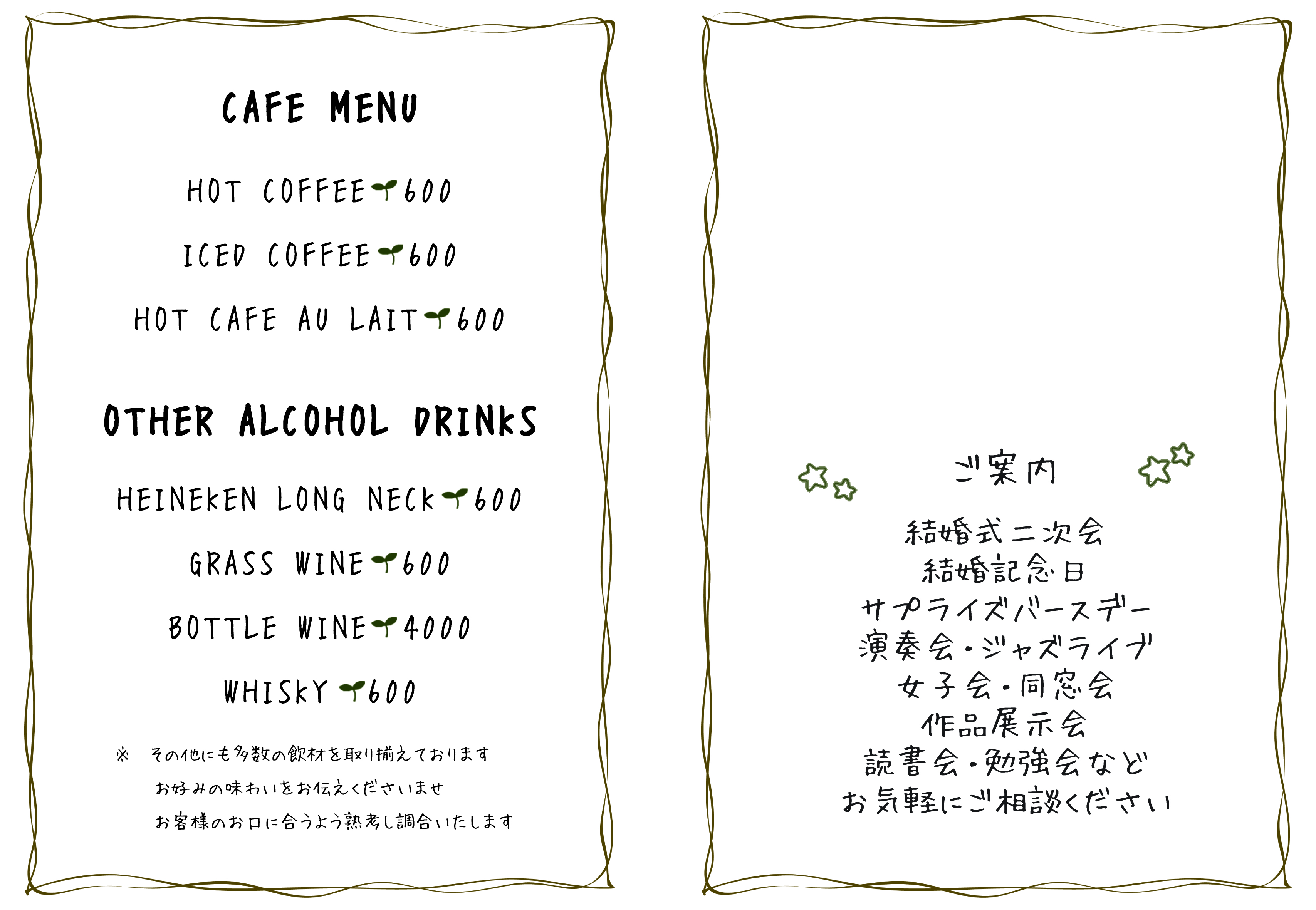 参加費は男性3000円 女性1000円 コーヒー代込み アルコール別