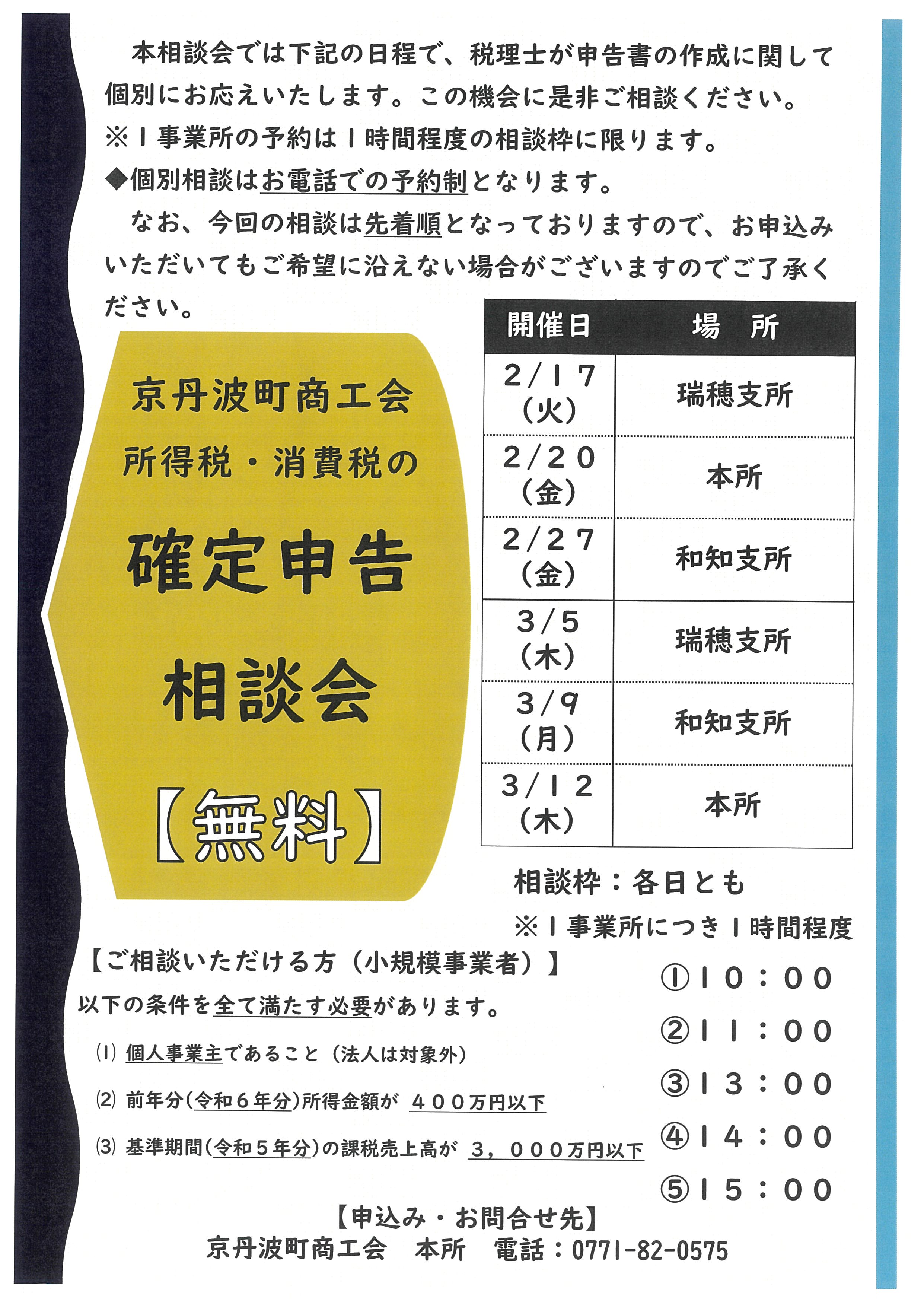 [京丹波町商工会] 【お知らせ】令和7年分所得税・消費税の確定申告相談会のご案内