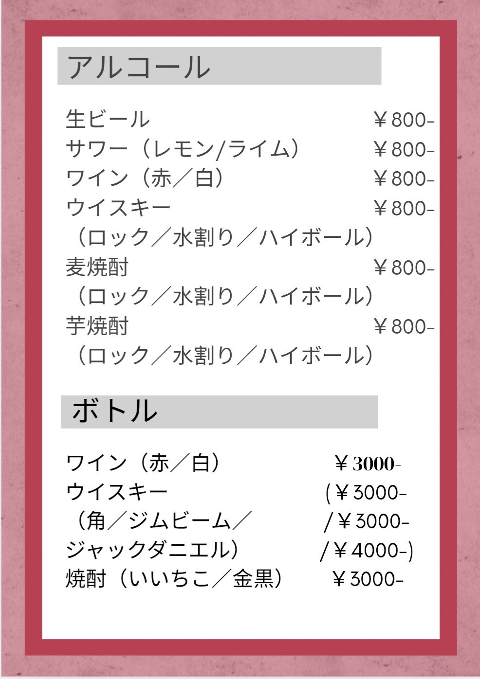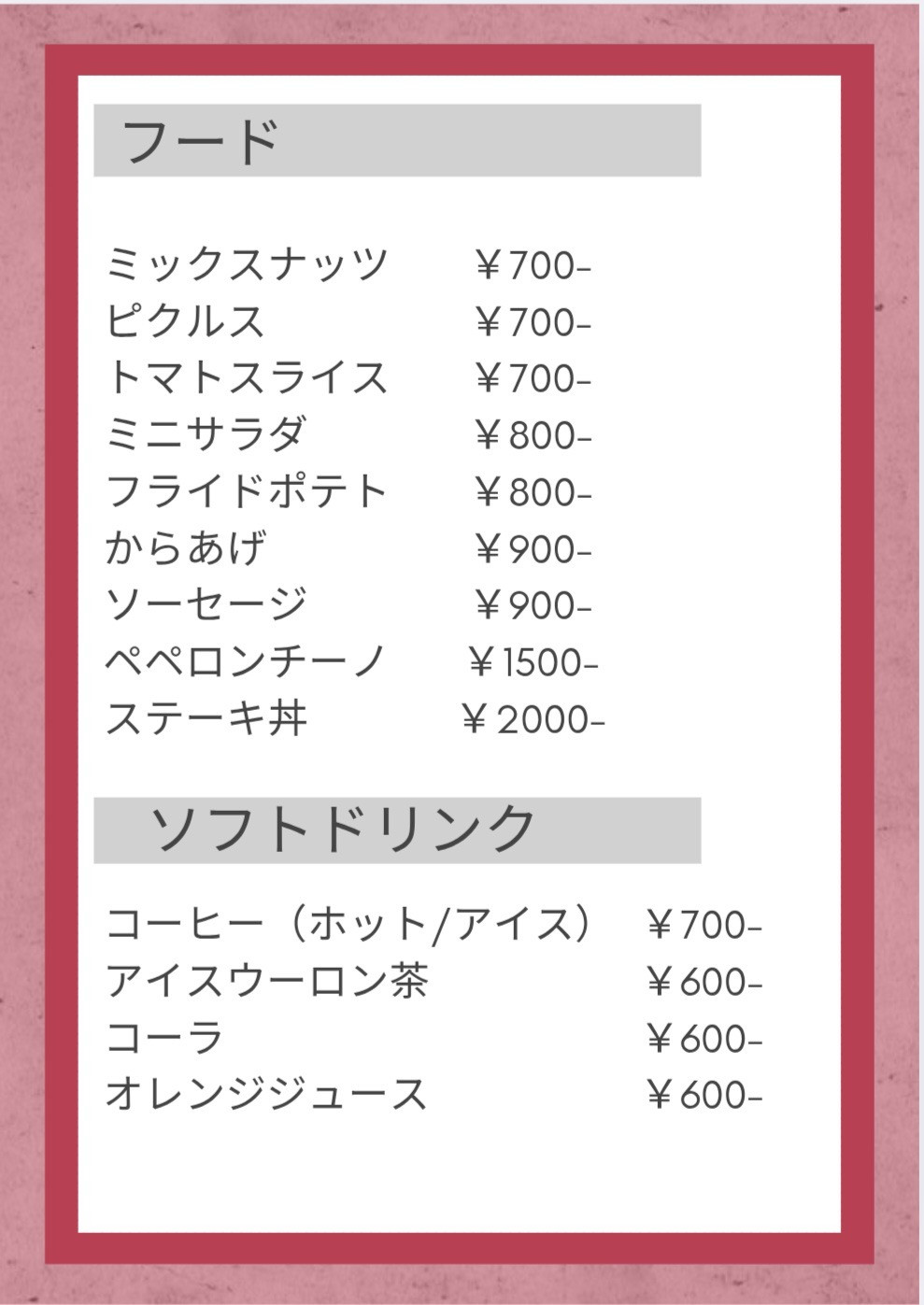 当日のライブにご来店のお客様は下記メニューより、各席に設置しておりますオーダー票にご記入の上ご注文をお願いいたします。
