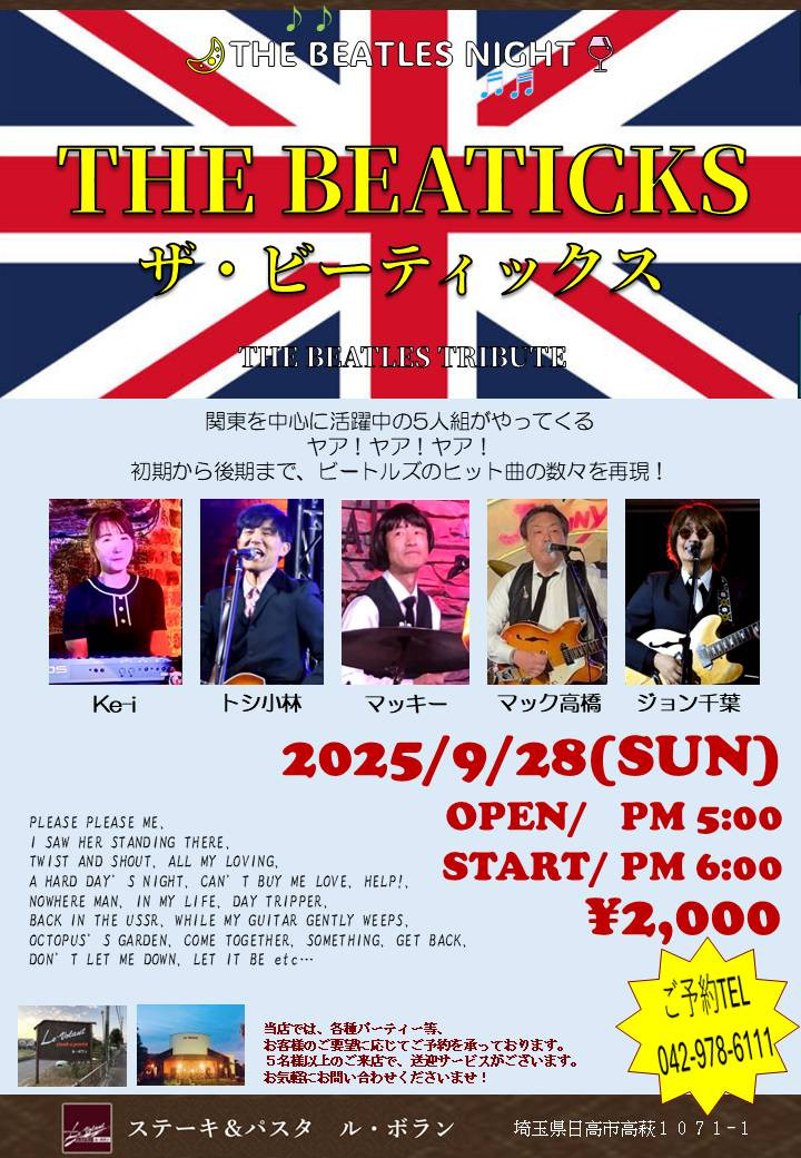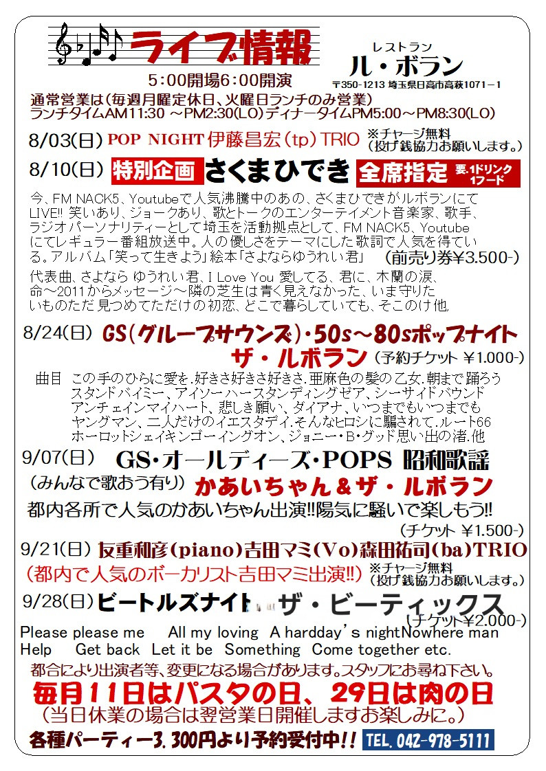 また、当日のライブにつきましてはご予約いただいているお客様のみのご案内となります。