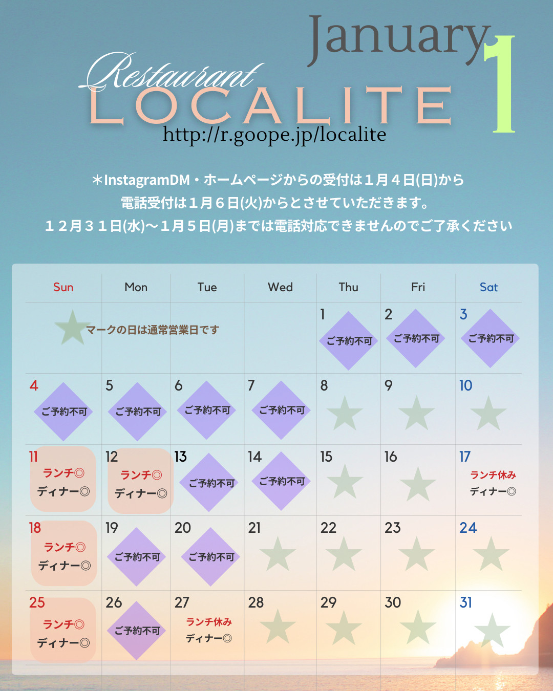 InstagramDMとホームページからのお問い合わせはお返事が1月4日日曜日以降となります。