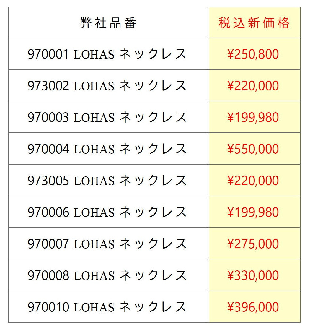 このたび弊社LOHASジュエリーの販売価格を誠に恐縮ではございますが、2025年6月1日以降発注・出荷分から値上げさせていただくことになりました。