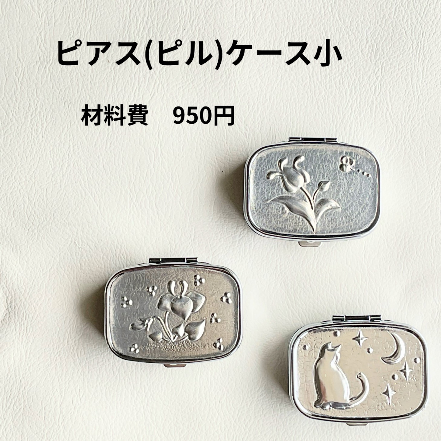 初心者の方は2レッスン(2時間を2回)の受講と練習用メタルシートの購入が必要です。メタルシートの大きさは作品によって変わるのでお問合せ時にお尋ねください。
