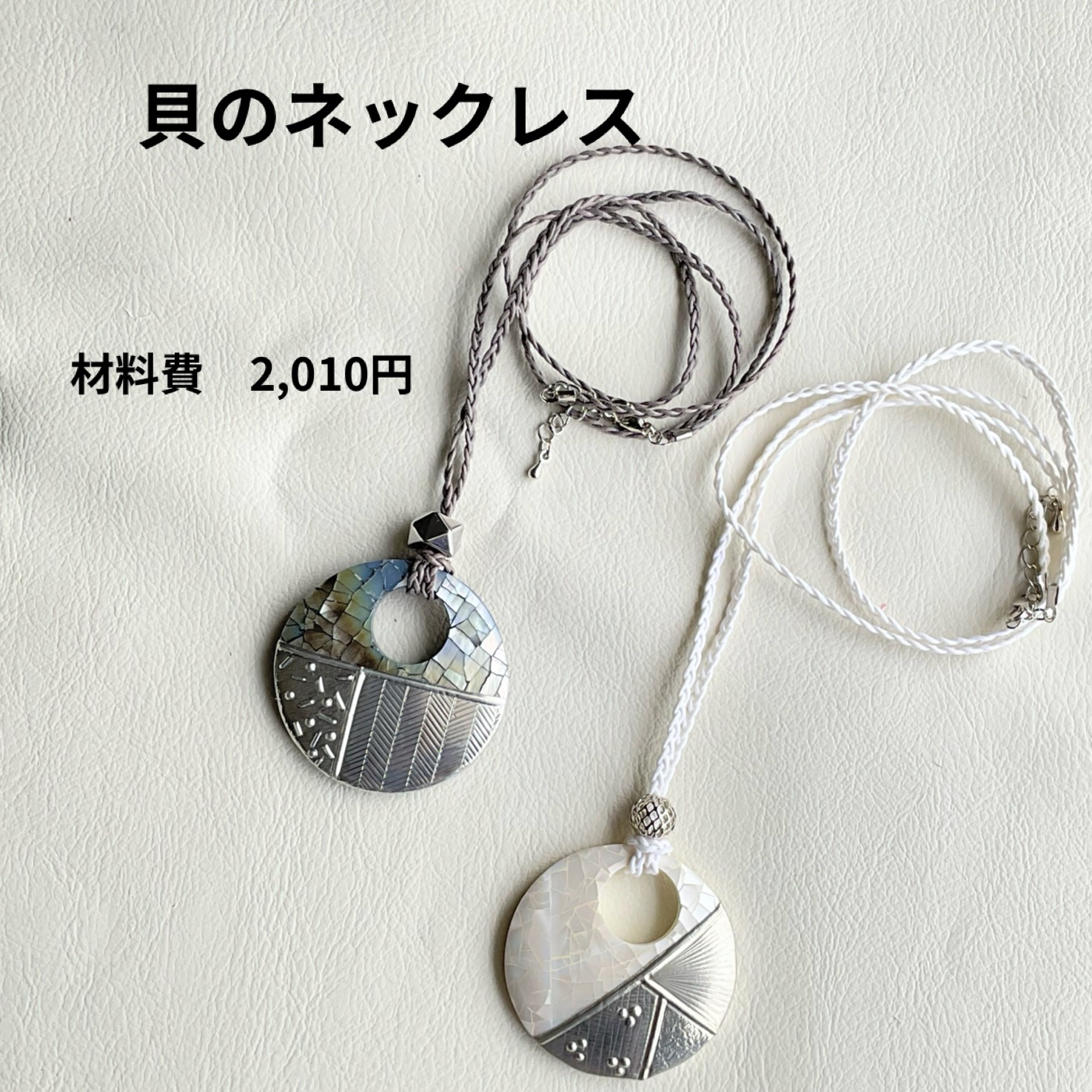 革のキーホルダー 貝のネックレス