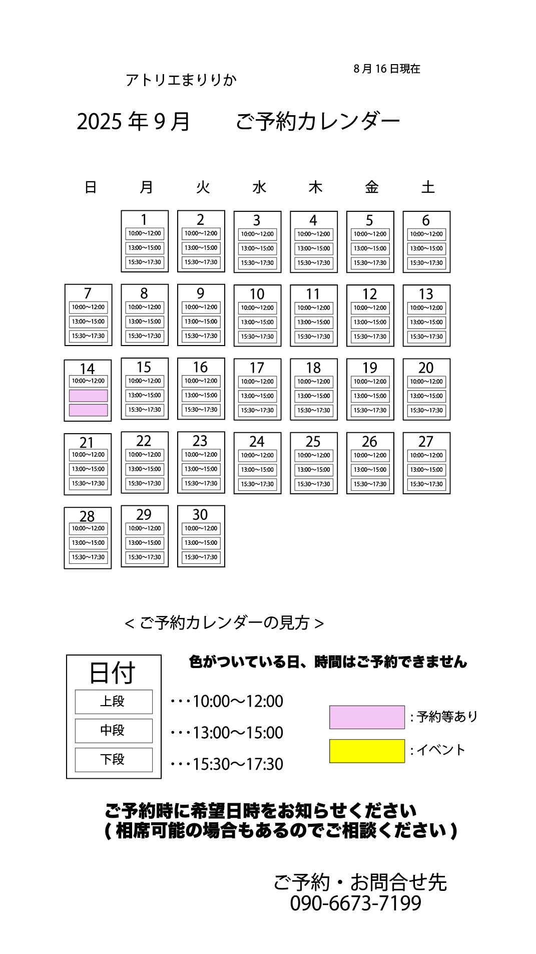 ご予約カレンダーになっております