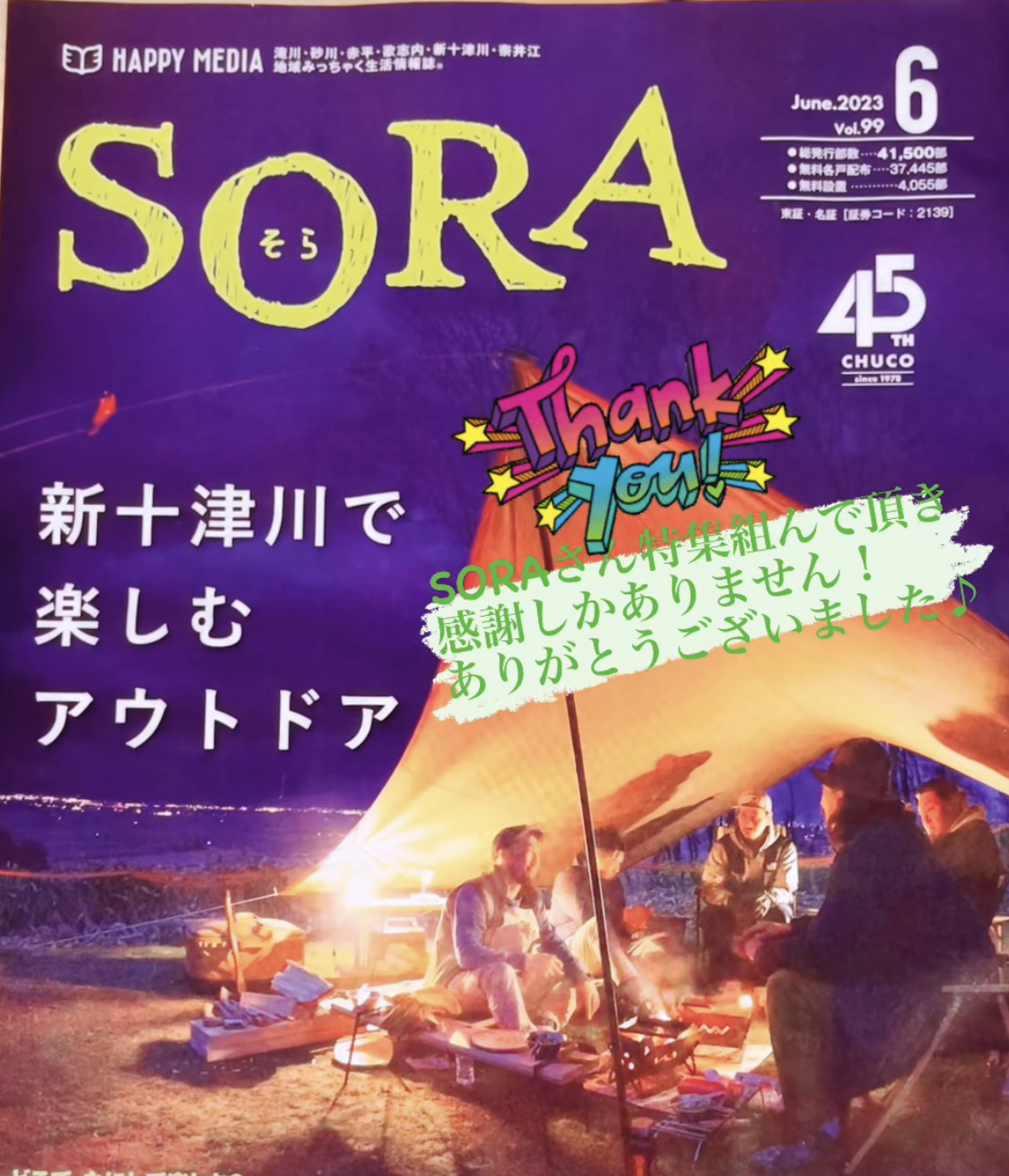 地元のフリーペーパー紙のSORA6月号で表紙を飾らせていただきました😍さらに次のページには2ページに渡る特集まで😍