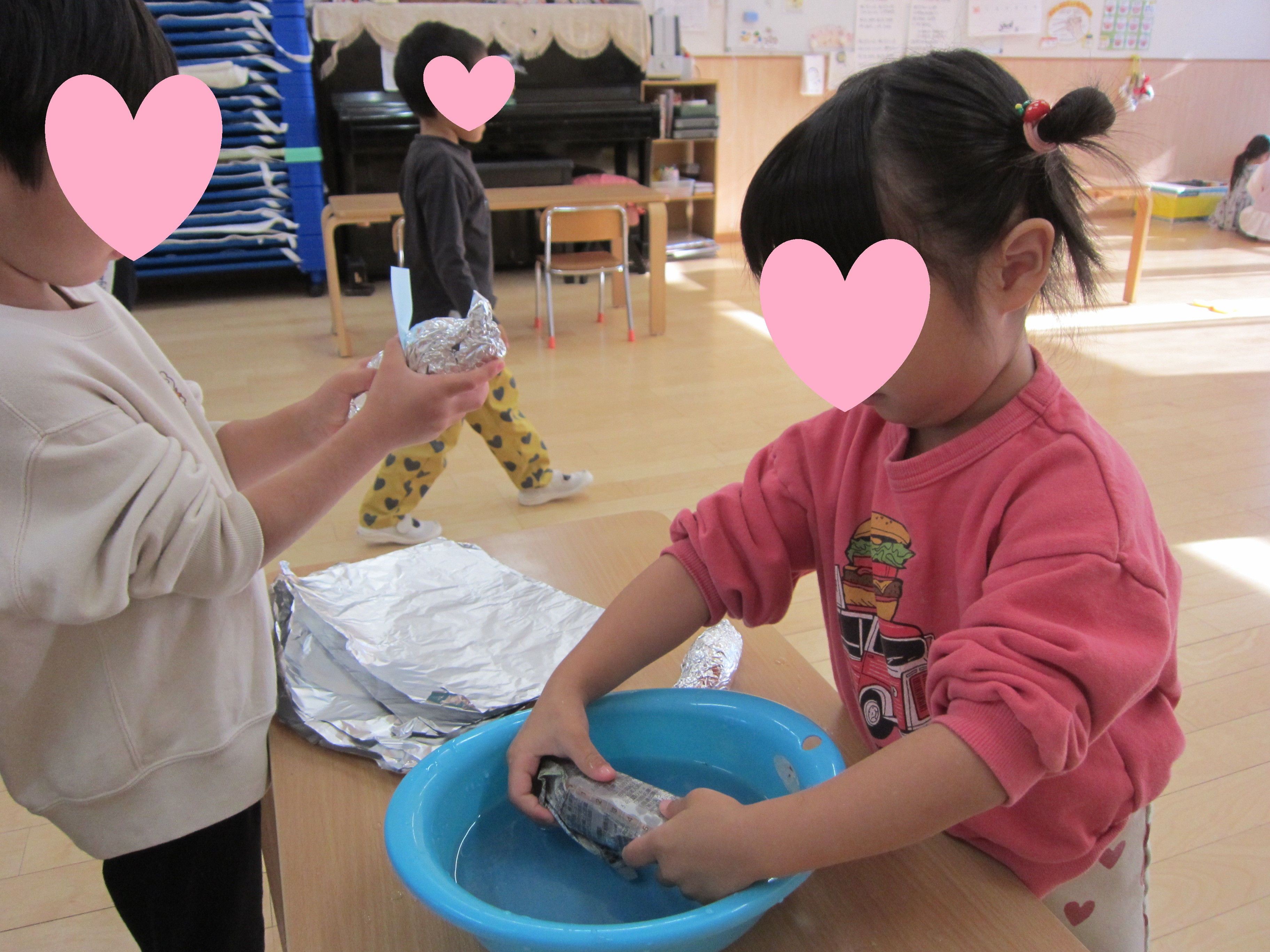 始まった、やきいもごっこ!