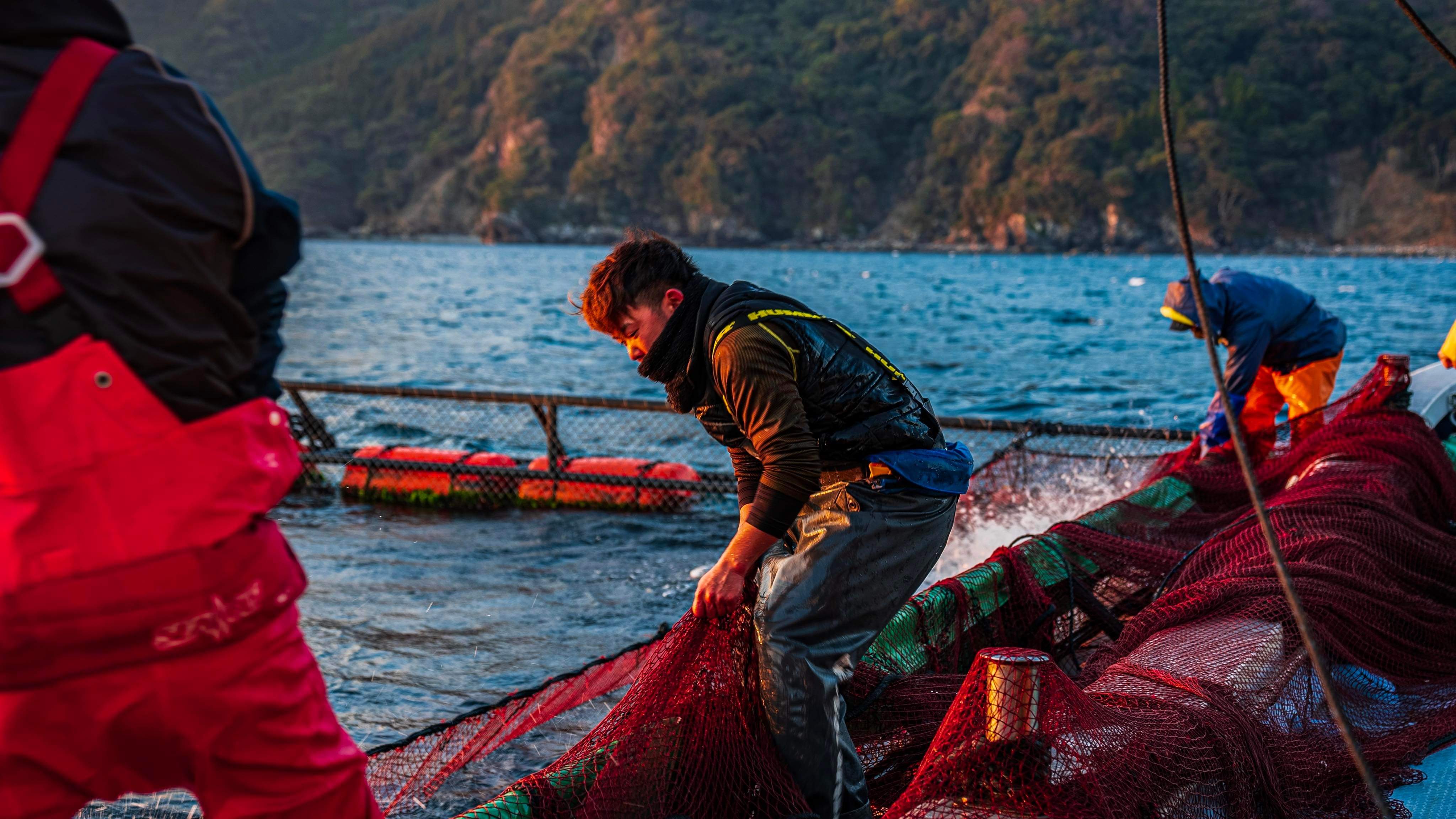 豊かな海に恵まれた地域でハマチ養殖に挑む、平均年齢30代前半の活気ある会社です。
