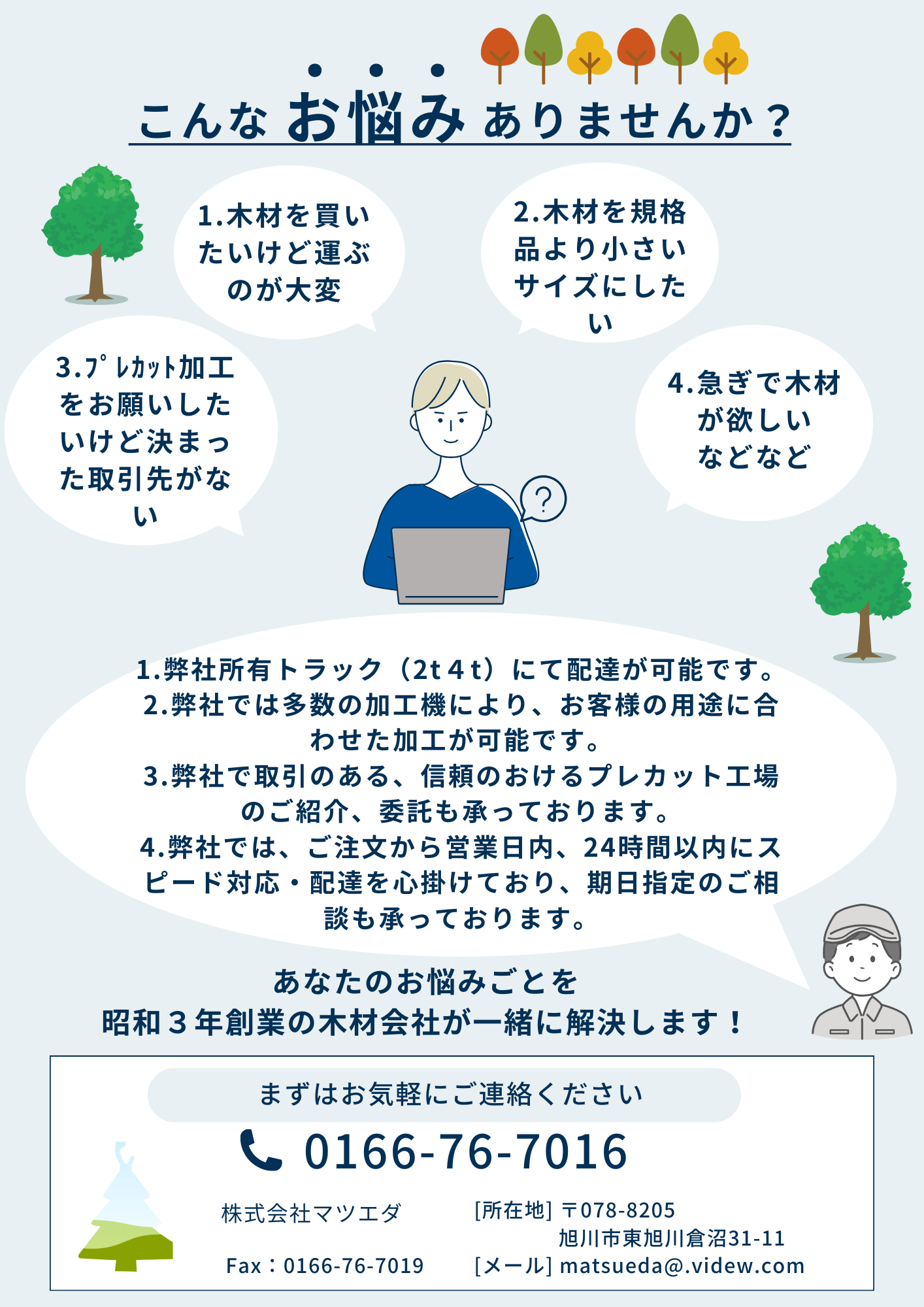 昭和3年創業の木材会社が、あなたのお悩みごとを一緒に解決します。