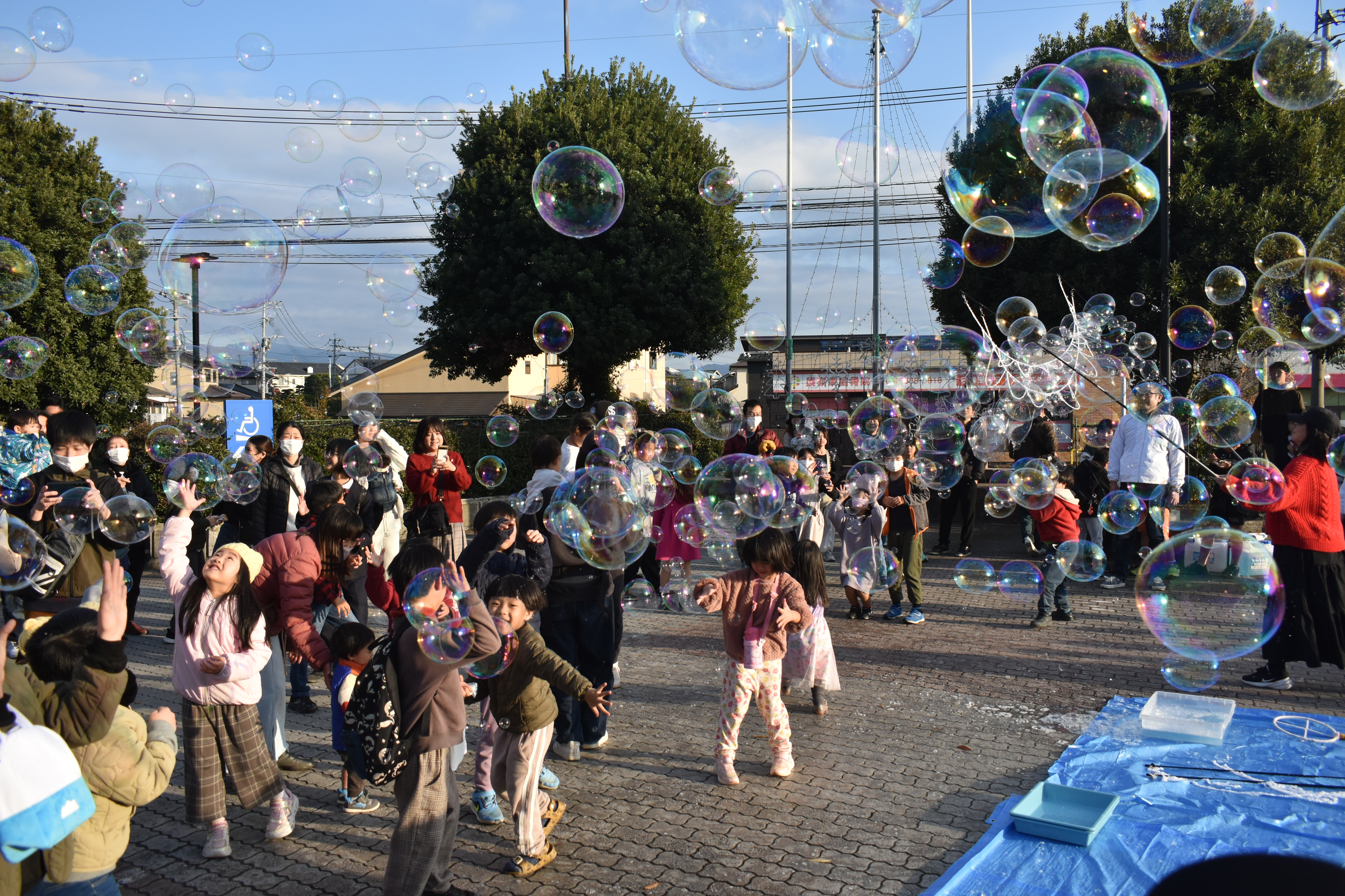 12月6日(土)に、熊本市東区と共同開催でイルミネーション点灯式イベント「あかりフェスタ」を、託麻まちづくりセンターにて開催いたしました。地域の保育園や中学校の合唱部、吹奏楽部の演奏、子供たちが楽しめるシャボン玉ショー、くまモンのダンスパフォーマンスなど、様々なイベントで会場は大いに盛り上がりました。会場を彩ったイルミネーションは12月25日まで点灯され、地域の皆様にお楽しみいただきました。