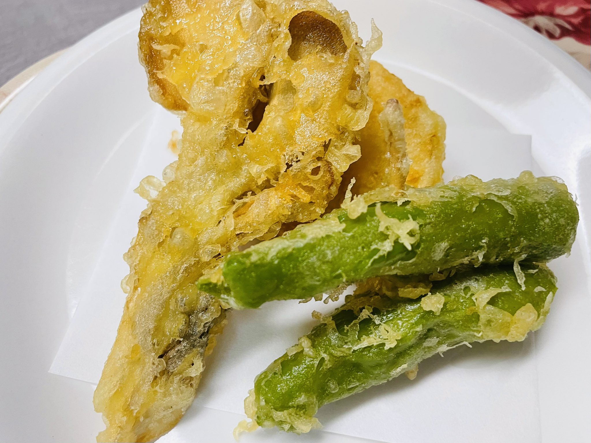 舞茸、ししとう、自家農園のサツマイモ天ぷら