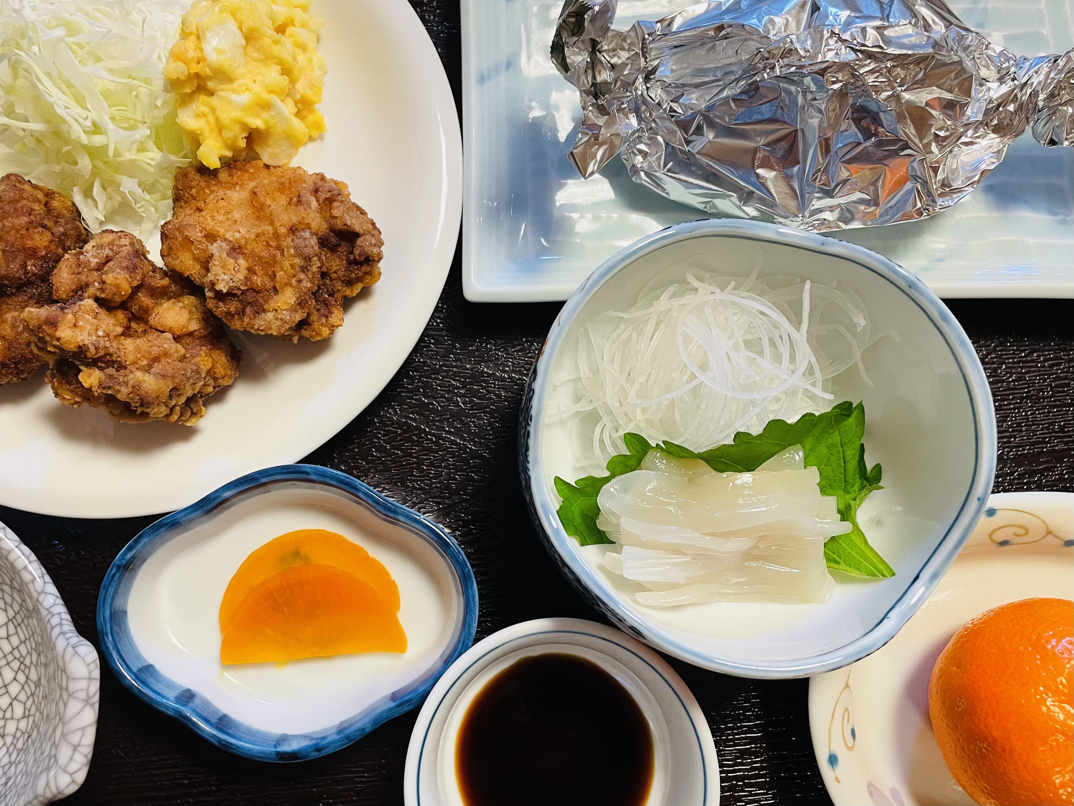 舞茸、ししとう、自家農園のサツマイモ天ぷら