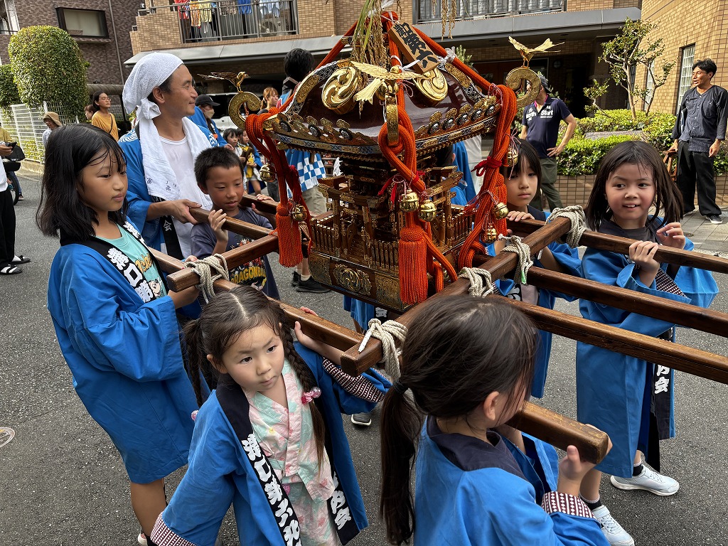 2日とも午後3時ごろからはちびっこが集まり子ども神輿の巡行。