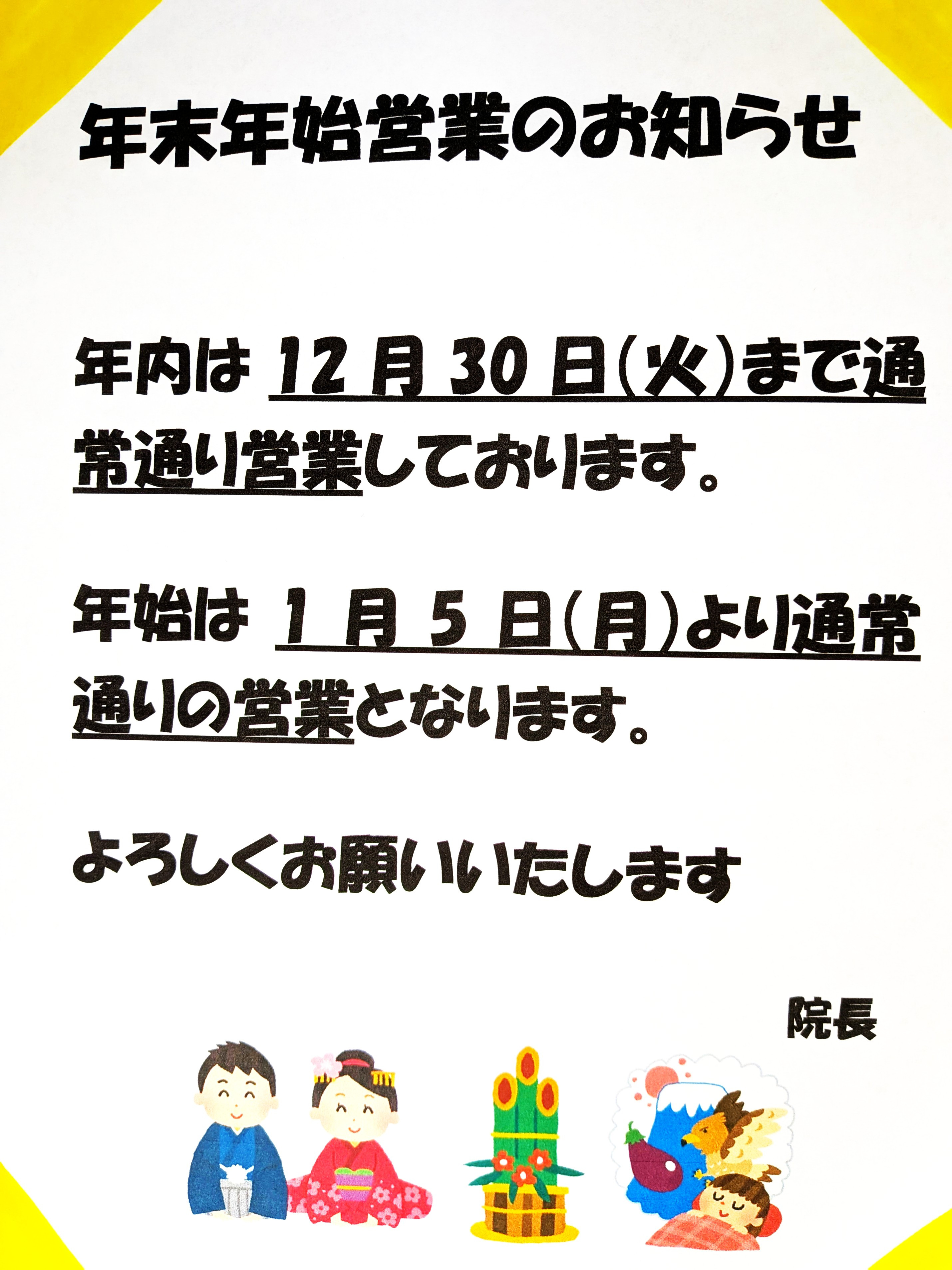 年末年始営業のお知らせ
