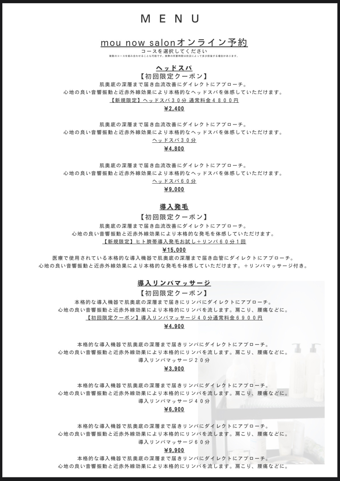 ヘッドスパ・頭皮導入・リンパメニューはこちら