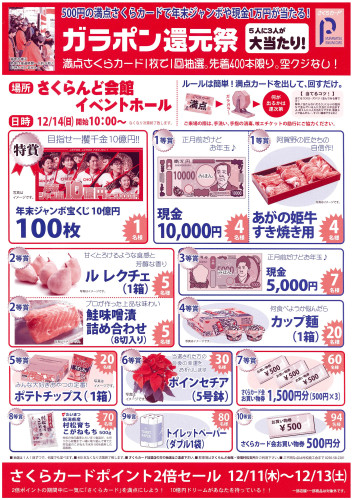 [村松さくらカード会] 年末ガラポン抽選会&さくらカードポイント2倍セールのお知らせ