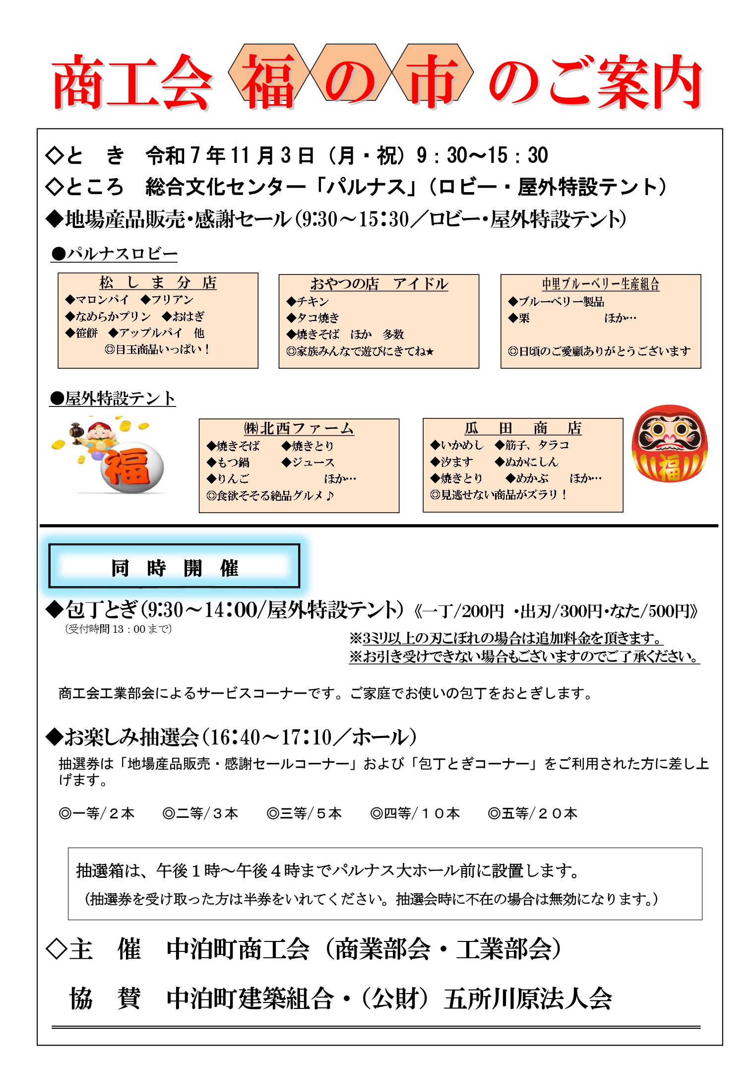 今年も恒例の 「福の市」 を下記のとおり開催いたします!