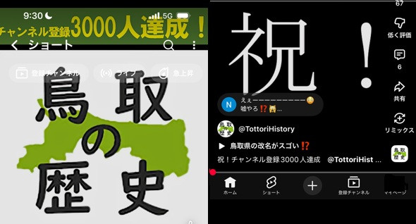YouTube『鳥取ヒストリー』チャンネル登録者数が3000人を達成しました!