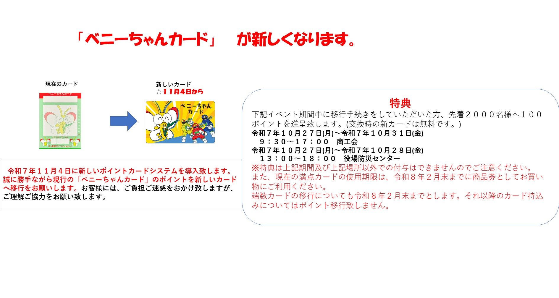 ベニーちゃんカードが新しくなります。 -