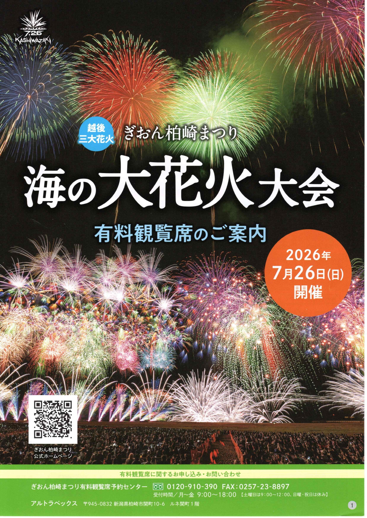 [ひまわり旅行柏崎] 【2026年】柏崎「海の大花火大会」開催決定!チケット予約代行承ります