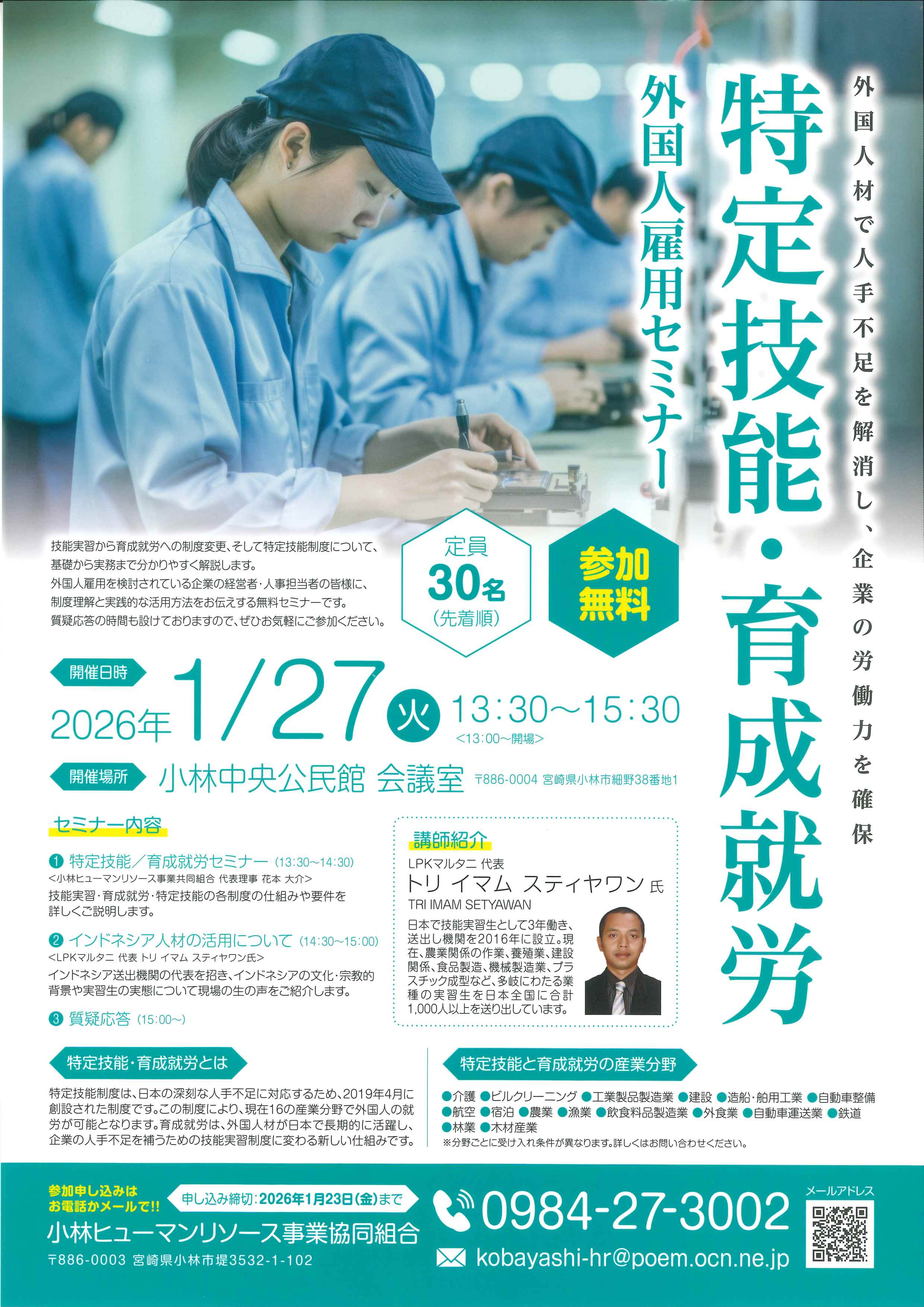 ~特定技能・育成就労 外国人雇用セミナー開催のお知らせ~