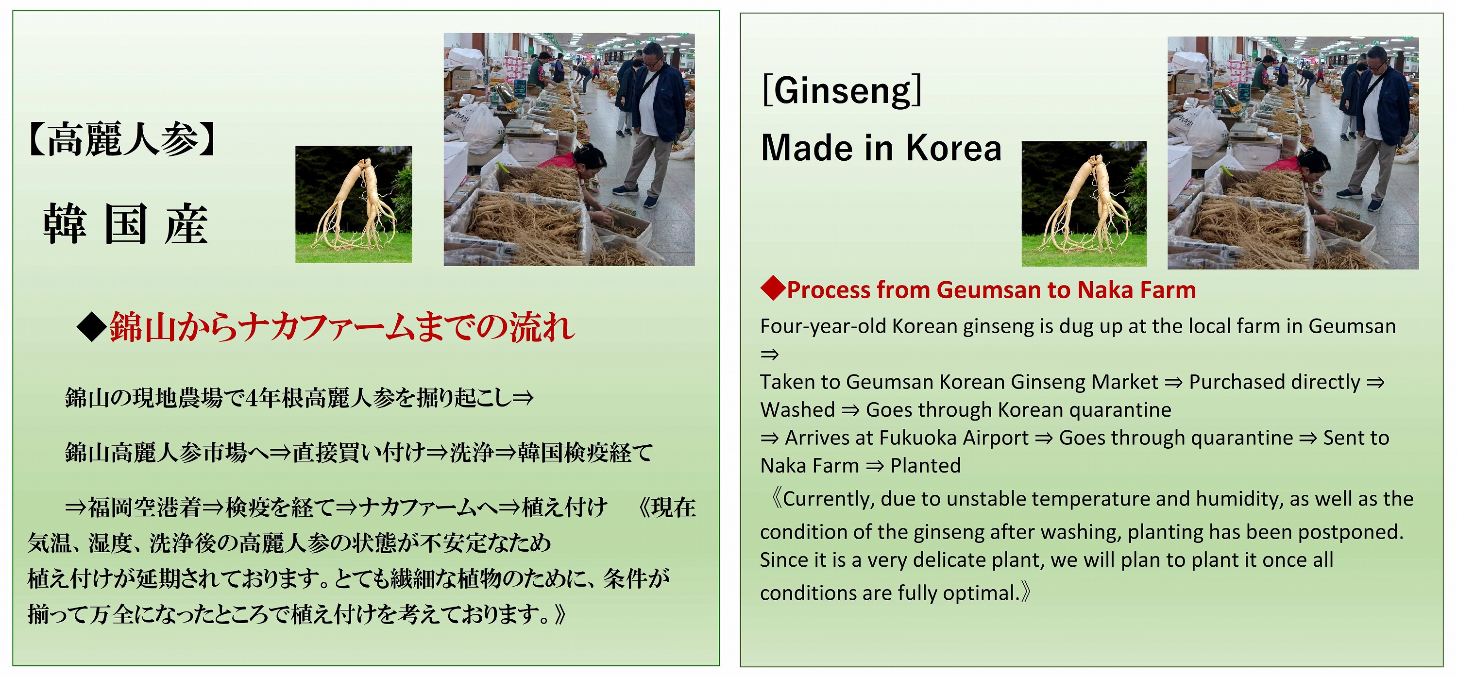 安全で安心、高品質の高麗人蔘です。