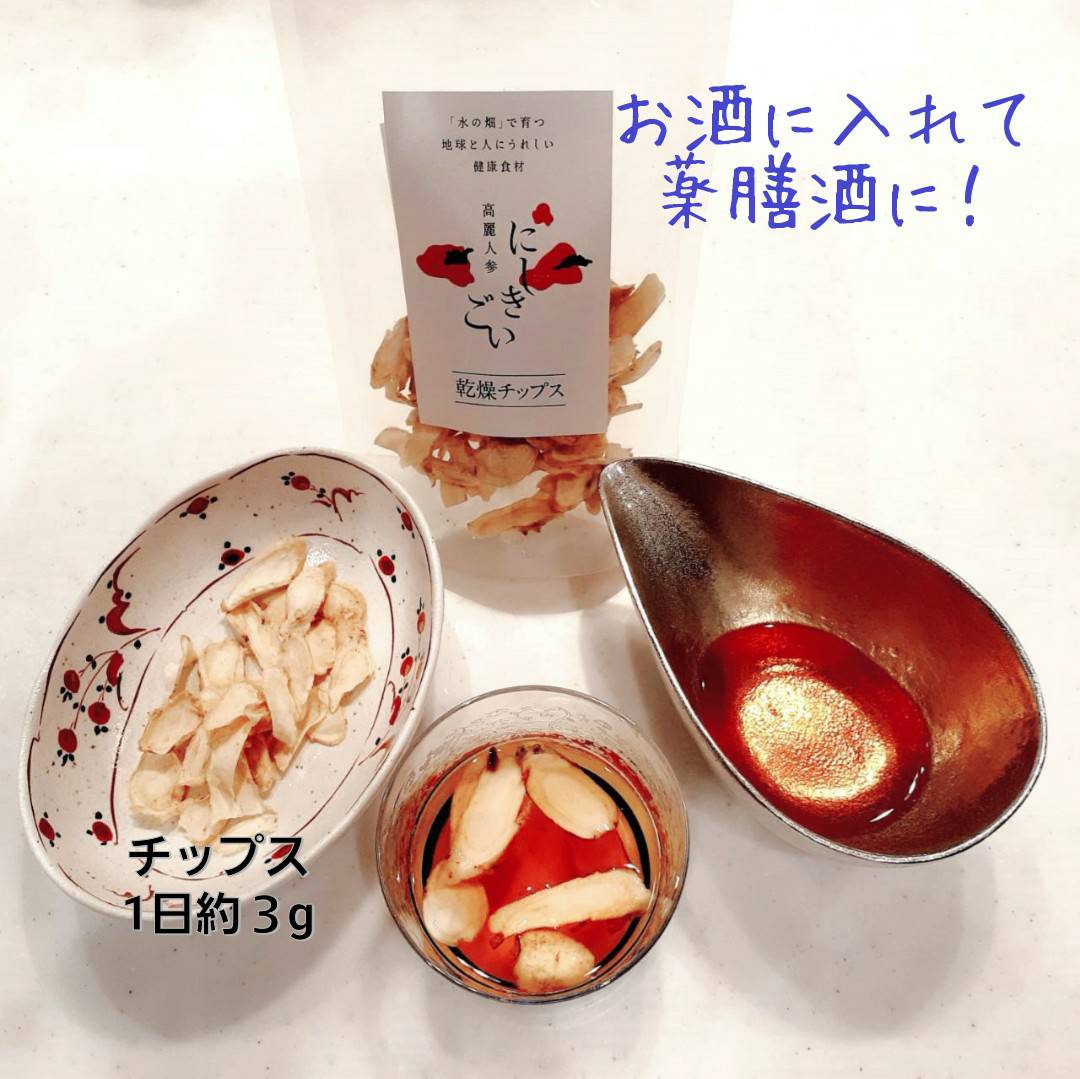 ※ 写真は生の物ですが高麗人参紅人も生と同じように料理や健康酒、ドリンクとして