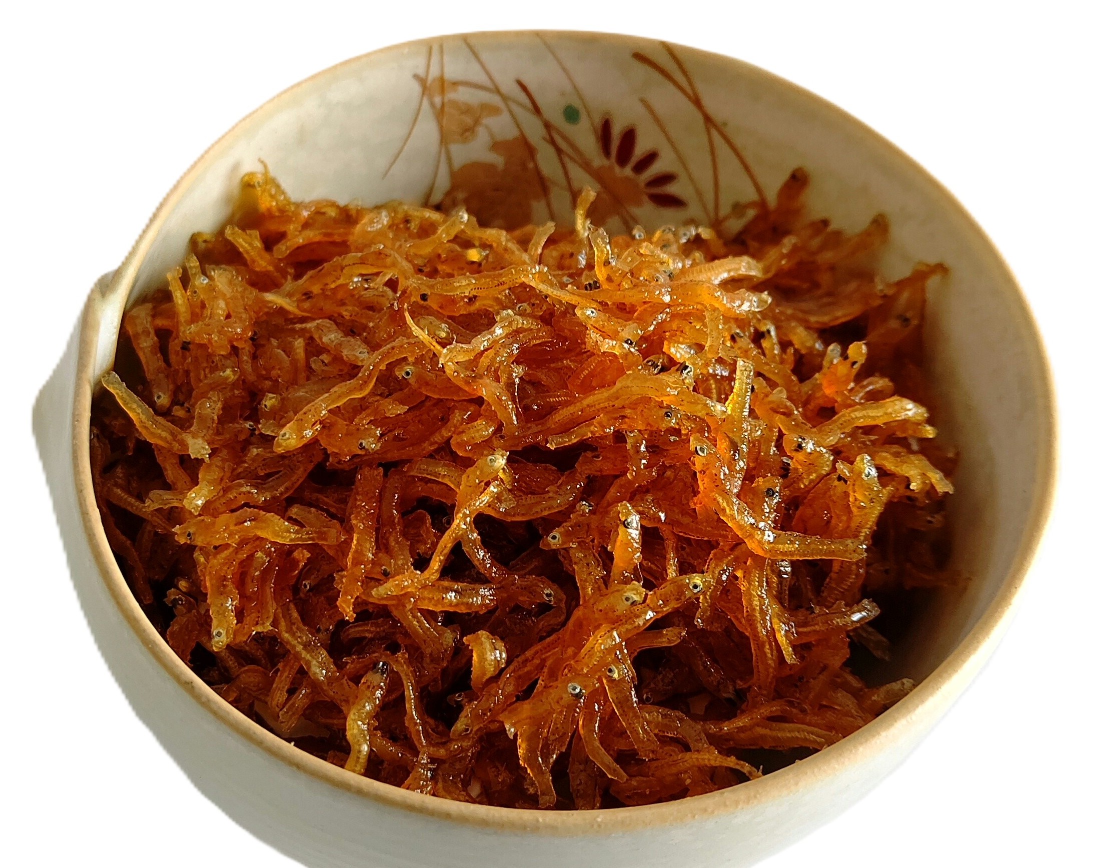 【原材料名】いわし類の稚魚(国産)、砂糖、醤油(小麦、大豆を含む)、本みりん、山椒の実