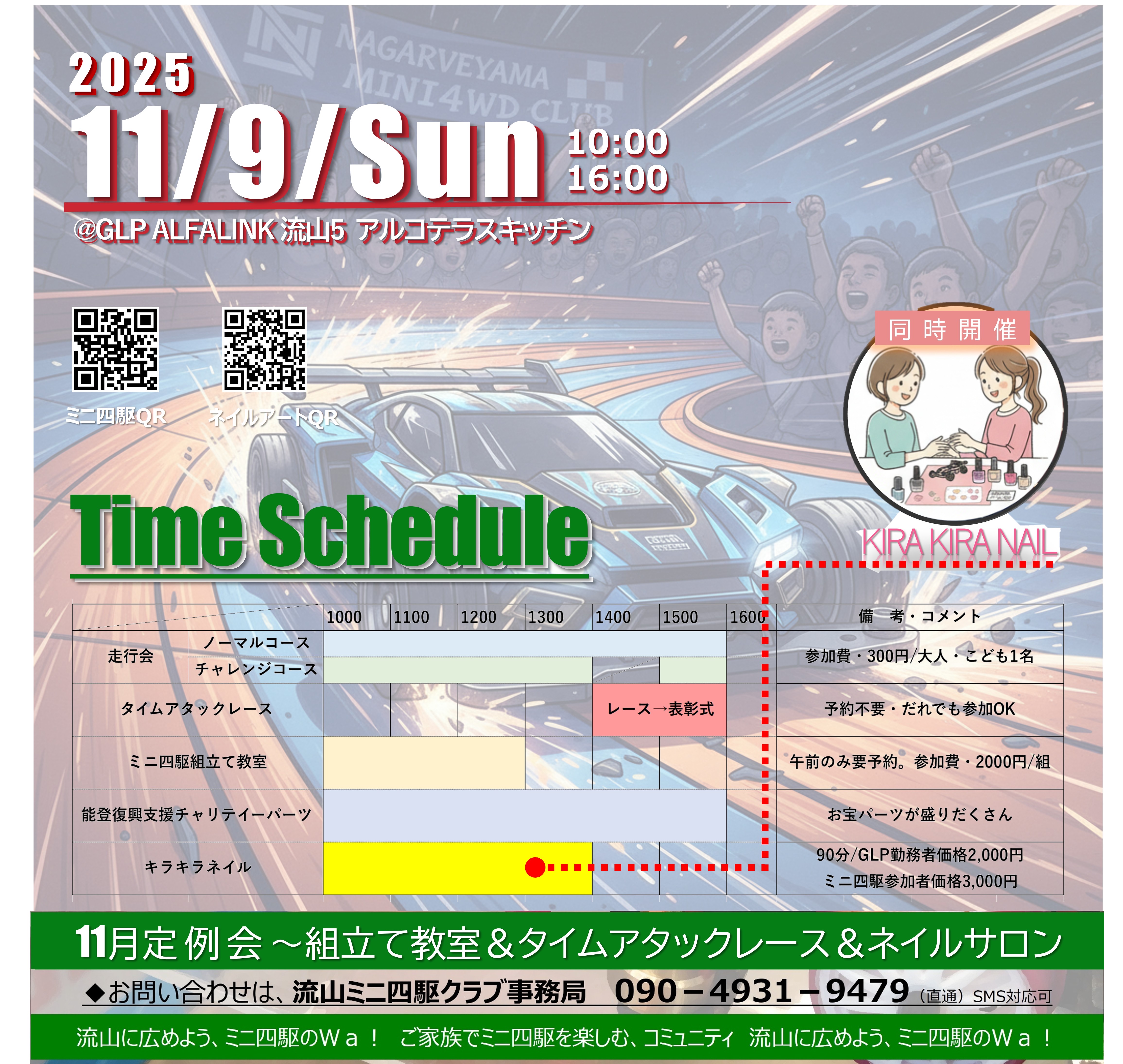 「流山のミニ四駆イベント、チャリティについて」とお伝えください。