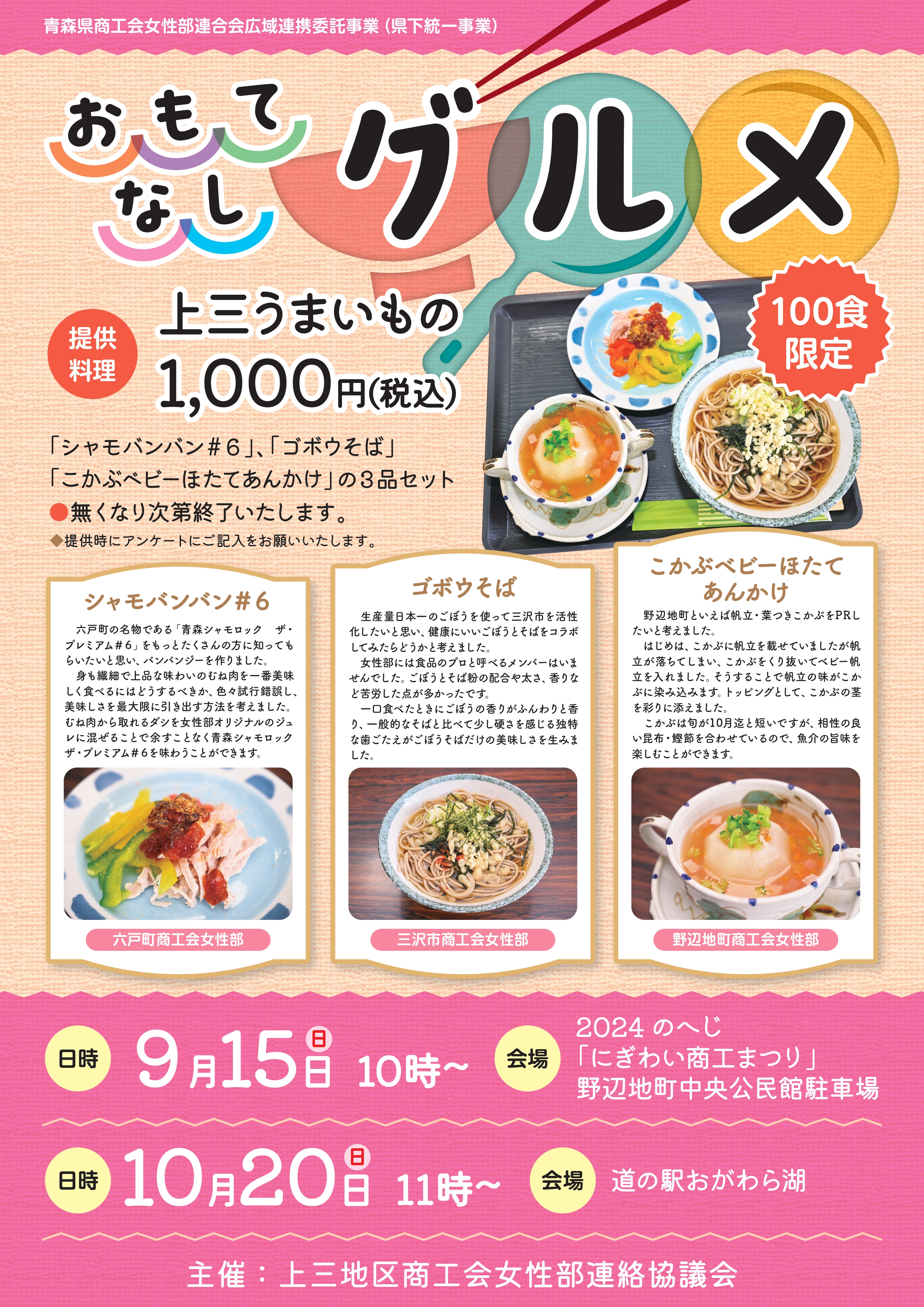 郷土の味を楽しむ会 および 野辺地歴史巡りツアー 申込締切のお知らせ