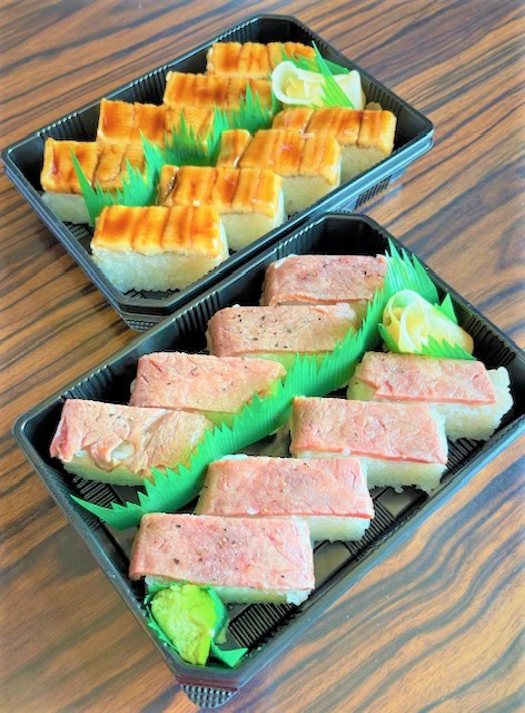 [漁師屋 秀 ] 「牛あぶり棒寿司」 「穴子棒寿司」