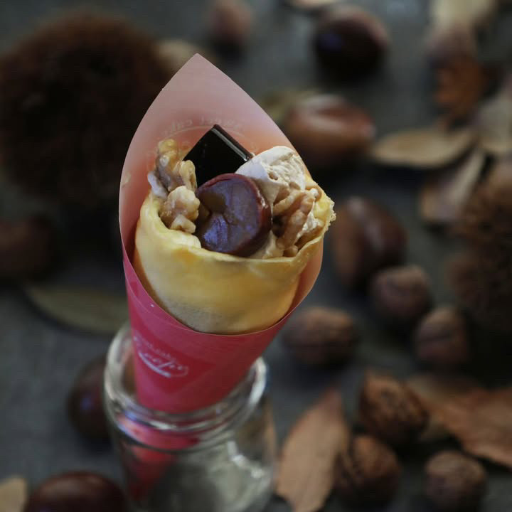 季節に応じて食材は変わりますが常時7〜10種類ほどのラインナップで、木工団地フェスでのおすすめは季節感たっぷりの「栗とコーヒーゼリーのクレープ」。