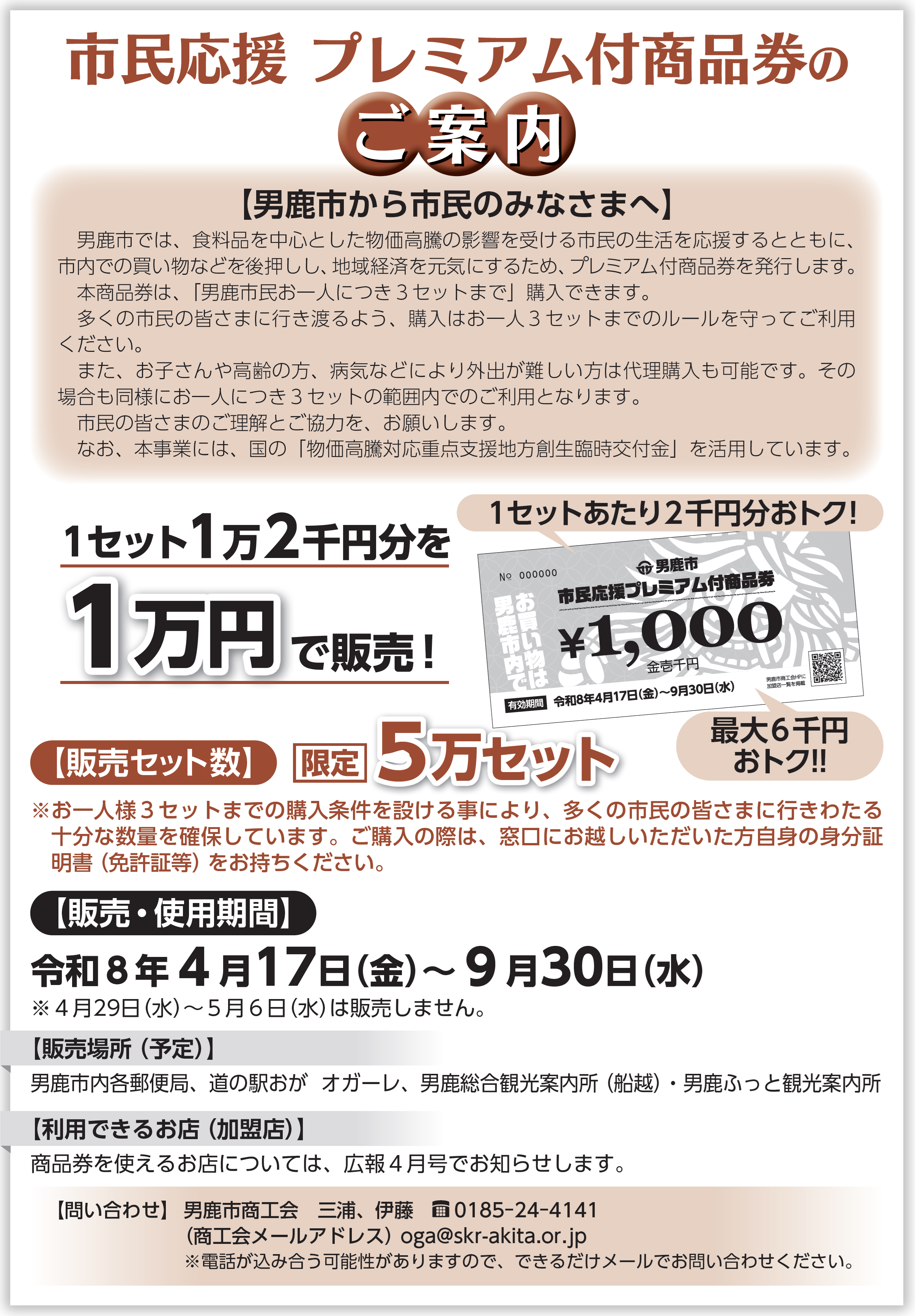 [男鹿のやきそばを広める会(男鹿しょっつる焼きそば)] ◎男鹿市からのお知らせ・市民応援プレミアム付商品券の販売 -