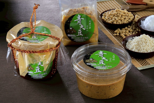 青大豆味噌は、岩手県産青大豆を使用し、秘伝味噌と同量の糀を入れております。青大豆のあっさりとした味と青大豆特有の香りで脂分が少なくダイエット効果も期待出来るとの報告が有ります。