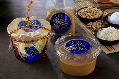 秘伝味噌は、山形県産秘伝大豆を使用した味噌で、秘伝大豆特有の香りと旨味に糀を贅沢に使用した大変貴重な味噌でございます。スーパーフードとも評される秘伝味噌を是非御賞味下さい。