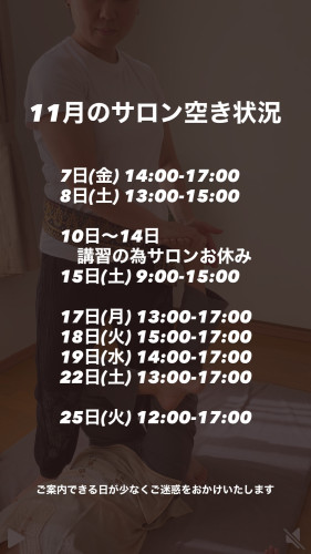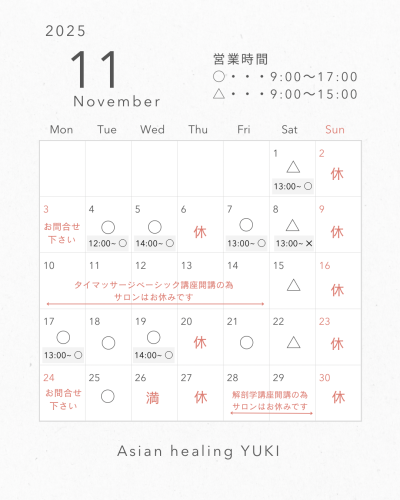 [Asian healing YUKI/アジアンヒーリングユキ] 11月の予定