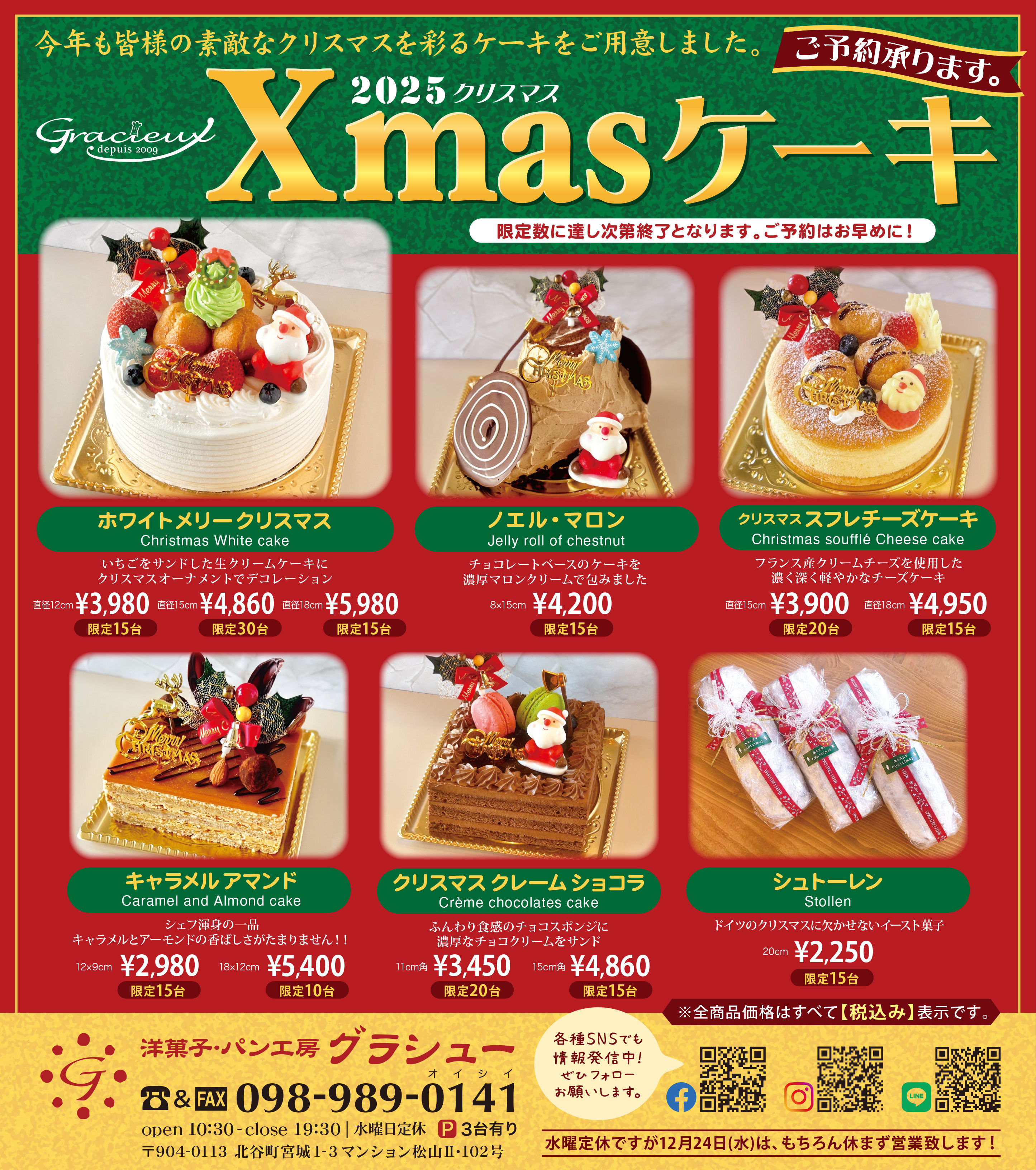 [洋菓子・パン工房グラシュー] 2025クリスマスケーキ