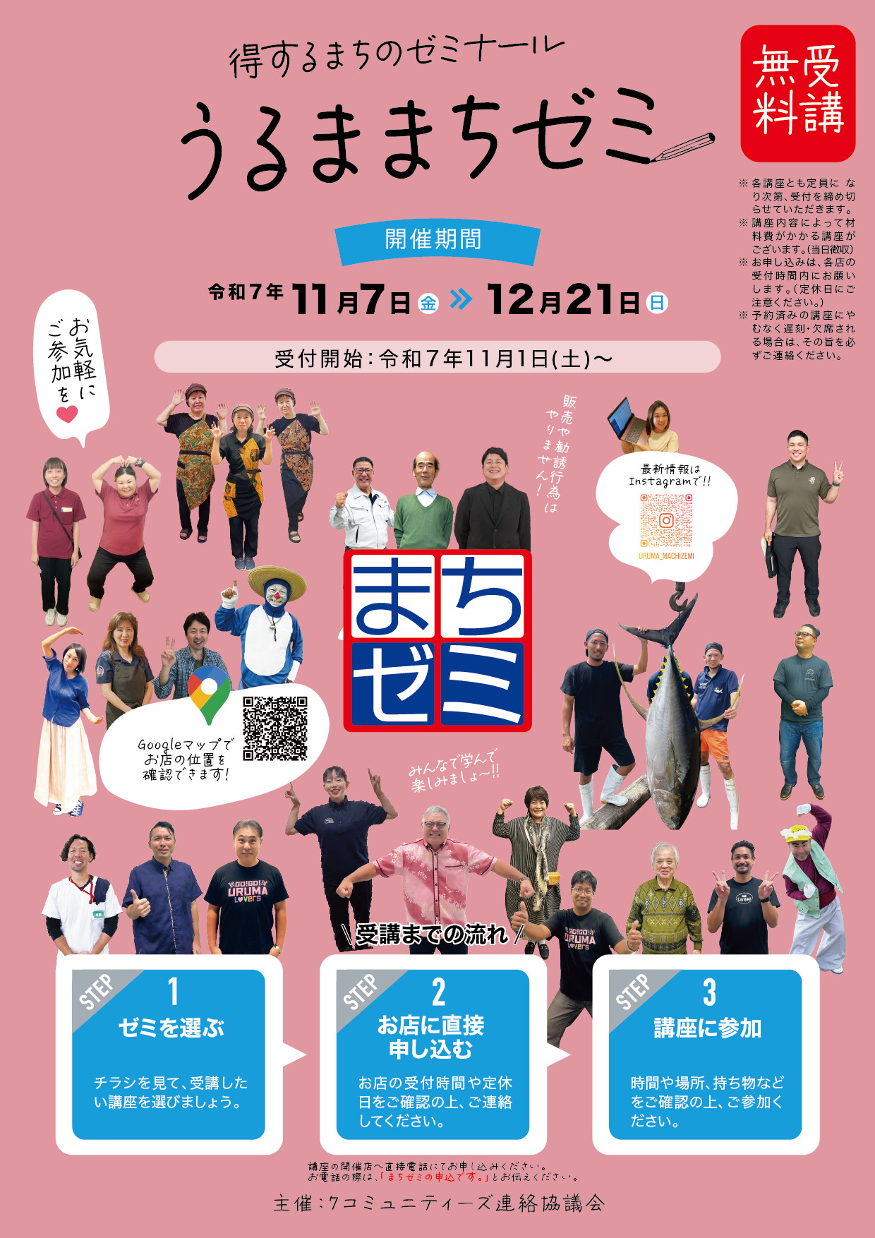 🎓うるままちゼミ 開催のお知らせ地域のお店の方が講師となって、プロの知識や技術を無料で学べる「うるままちゼミ」が今年も開催されます! お買い物のついでに、楽し...