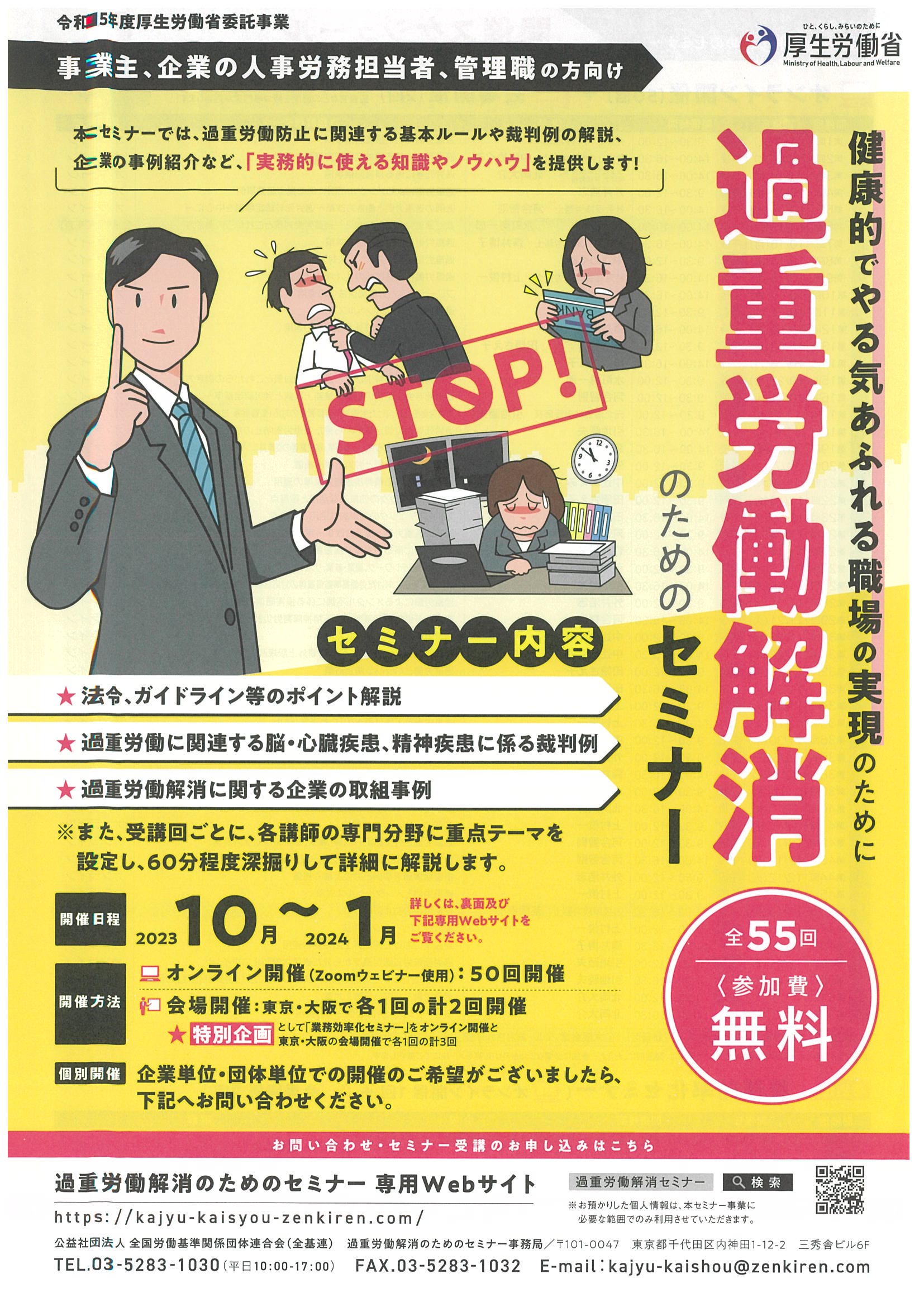 過重労働解消のためのセミナー及び過重労働解消キャンペーンに関する広報事業|令和5年度 厚生労働省委託事業 (kajyu-kaisyou-zenkiren.com)