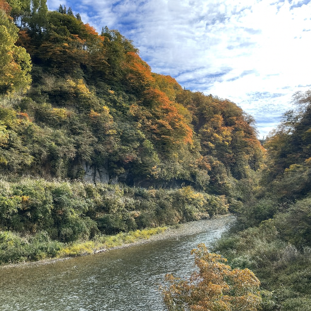 写真は11/6の午前中に撮影しました。日に日に寒くなってきましたが紅葉の見頃を迎えました。この日は天気も良く青空もきれいでした。このあたりの見頃は今月の中旬までだそうです。紅葉はきれいなんですが、楽しめる期間が短いんですよね。良い天気の際には皆様もぜひ楽しんでください。ちなみに写真は見栄えが良くなるようにAIに少し修正してもらいました。便利で助かります。